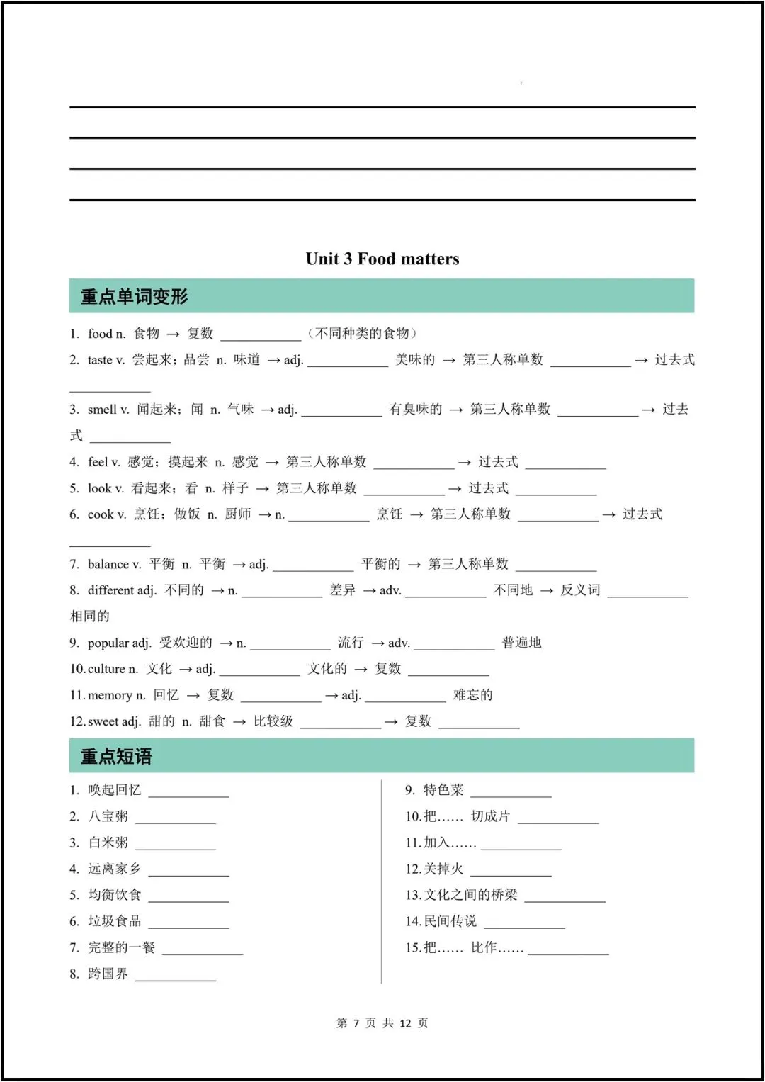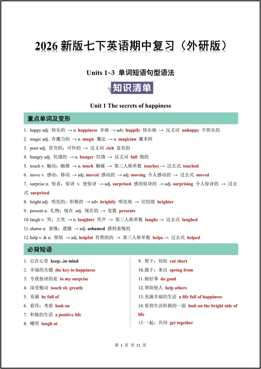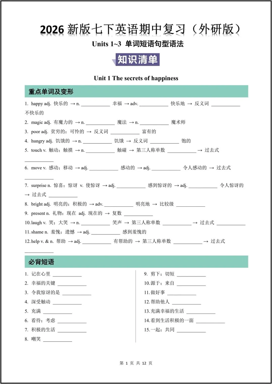 2026新(外研版)七年级下册英语期中复习全汇总(重点单词、短语、句型、语法、作文)背诵版+默写版,可打印!