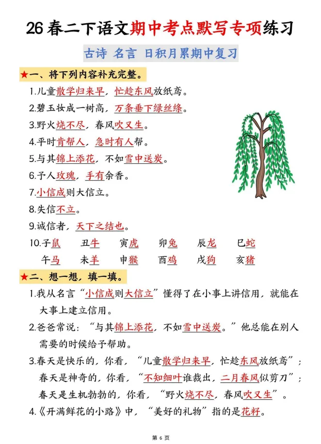 今日多多给大家分享的是《26春二下语文期中考点默写专项练习》分享到班级群/年级群,让其他家长打印出来,帮助孩子学习。支持正版。