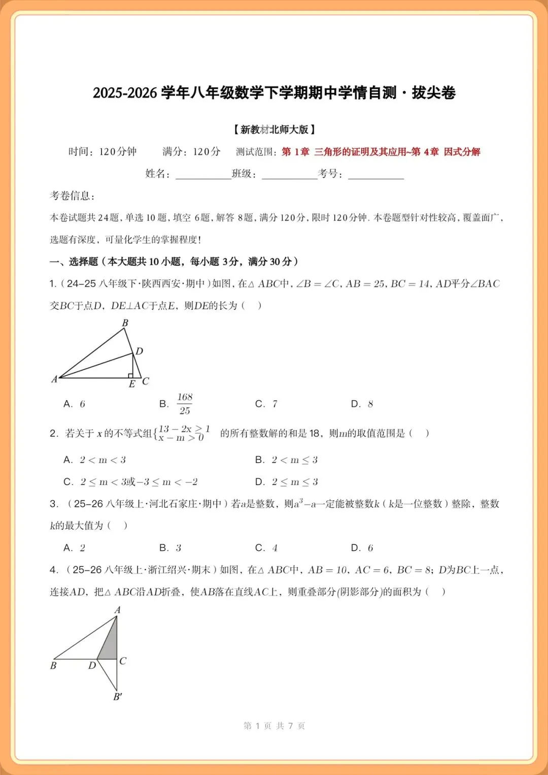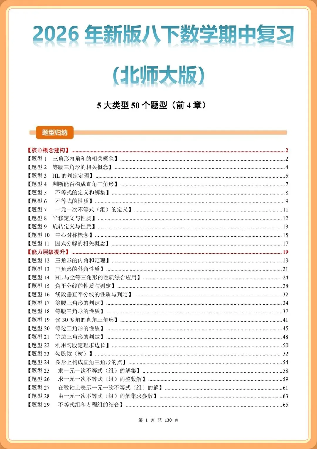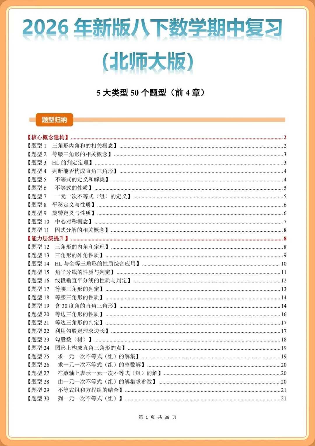 2026新(北师大版)八年级下册数学期中专项复习(5大类型50题型汇总)+期中试卷,考前必练可打印!