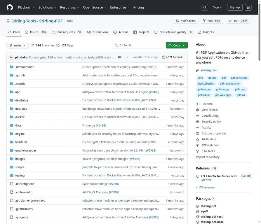 今天想跟大家分享一个真正能让你实现“PDF 自由”的神器:Stirling-PDF。它是一个完全开源、免费的 PDF 处理平台,它的厉害之处在于:它把几十个 PDF 高级功能全部整合在了一起,而且完全不需要联网。