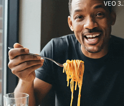 “威尔·史密斯吃意面”已成为衡量AI视频进步的非正式基准——从2023年扭曲怪异的噩梦画面,到2025年逼真自然的日常场景,不到两年时间,AI视频完成了从“伪人模仿人类”到“以假乱真”的飞跃。