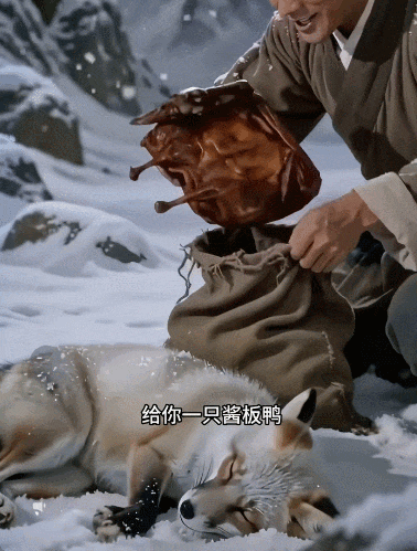 比如抖音上爆火的《雪山救狐狸》,采用邵氏武侠风格,讲述侠客雪中救狐、狐狸化人后反套路喊出“我不是狐狸,我是那只酱板鸭”的喜剧反转故事,传播量突破50亿次。而整个视频从创意到上线只花了大约5个小时。