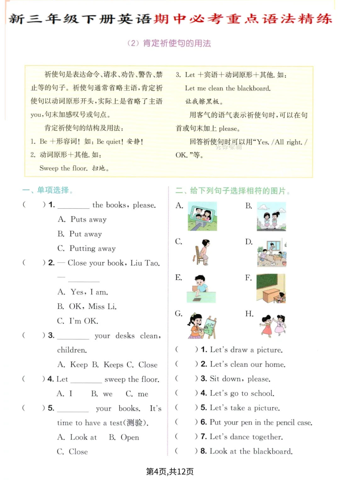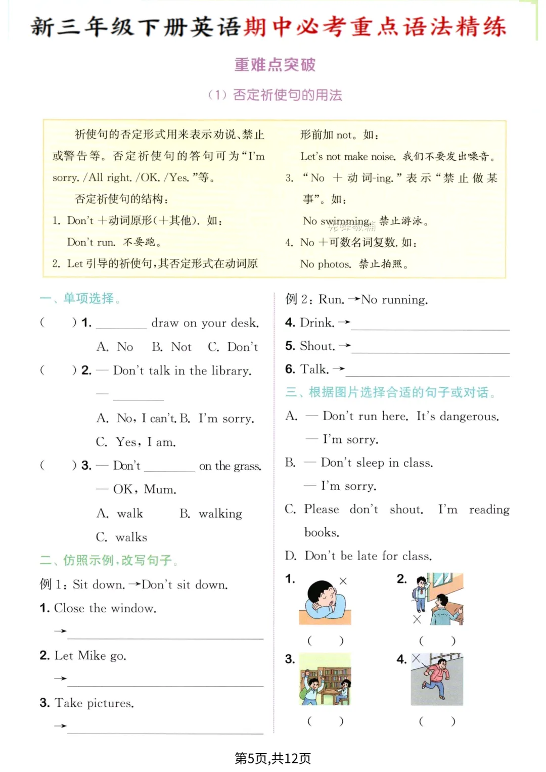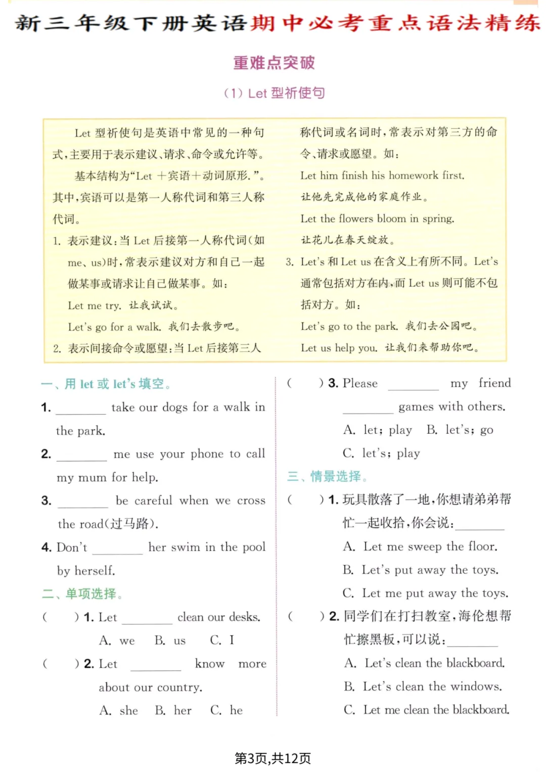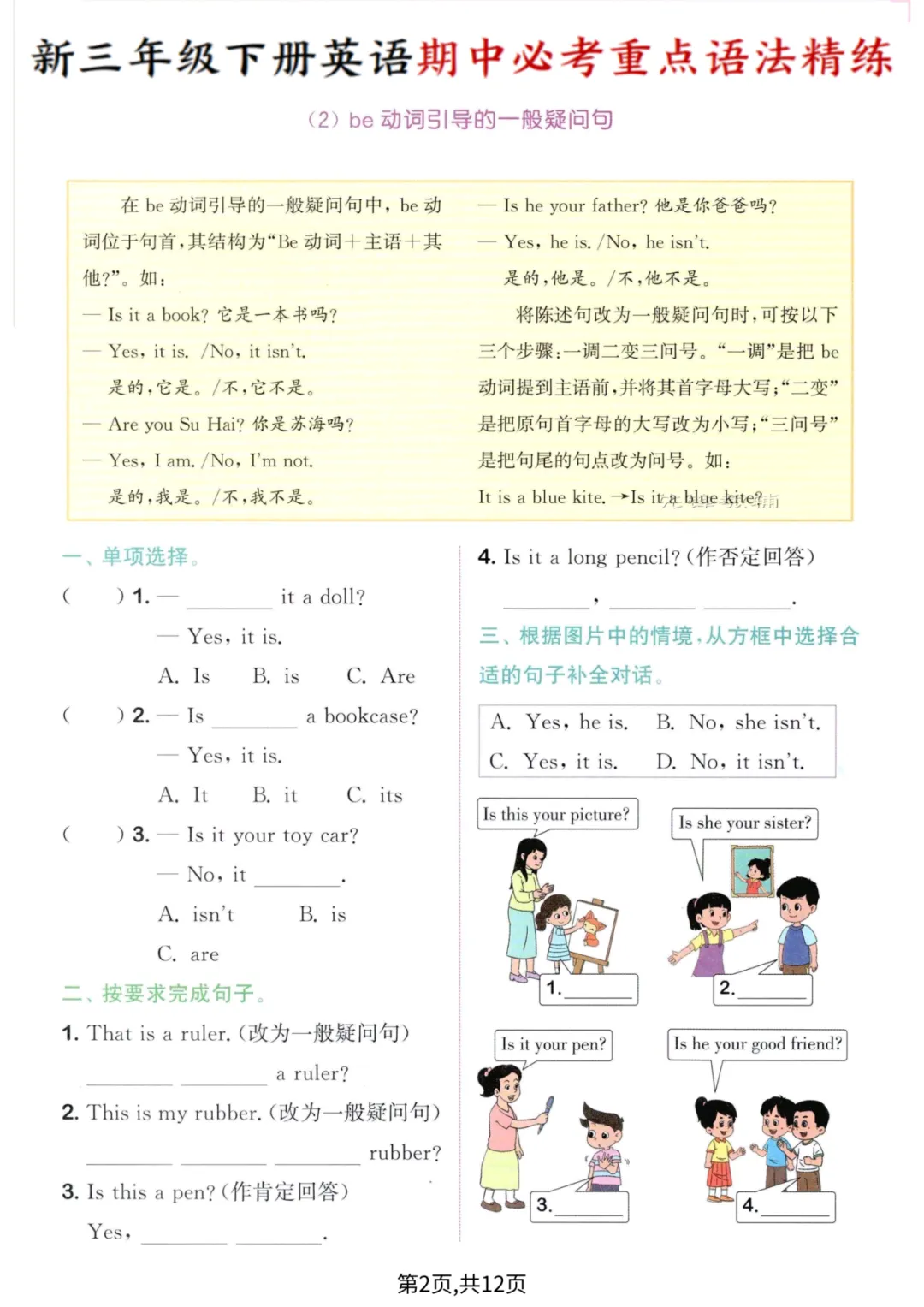 26年三年级下册英语译林版【期中必考重点语法精炼】(电子版PDF可打印)