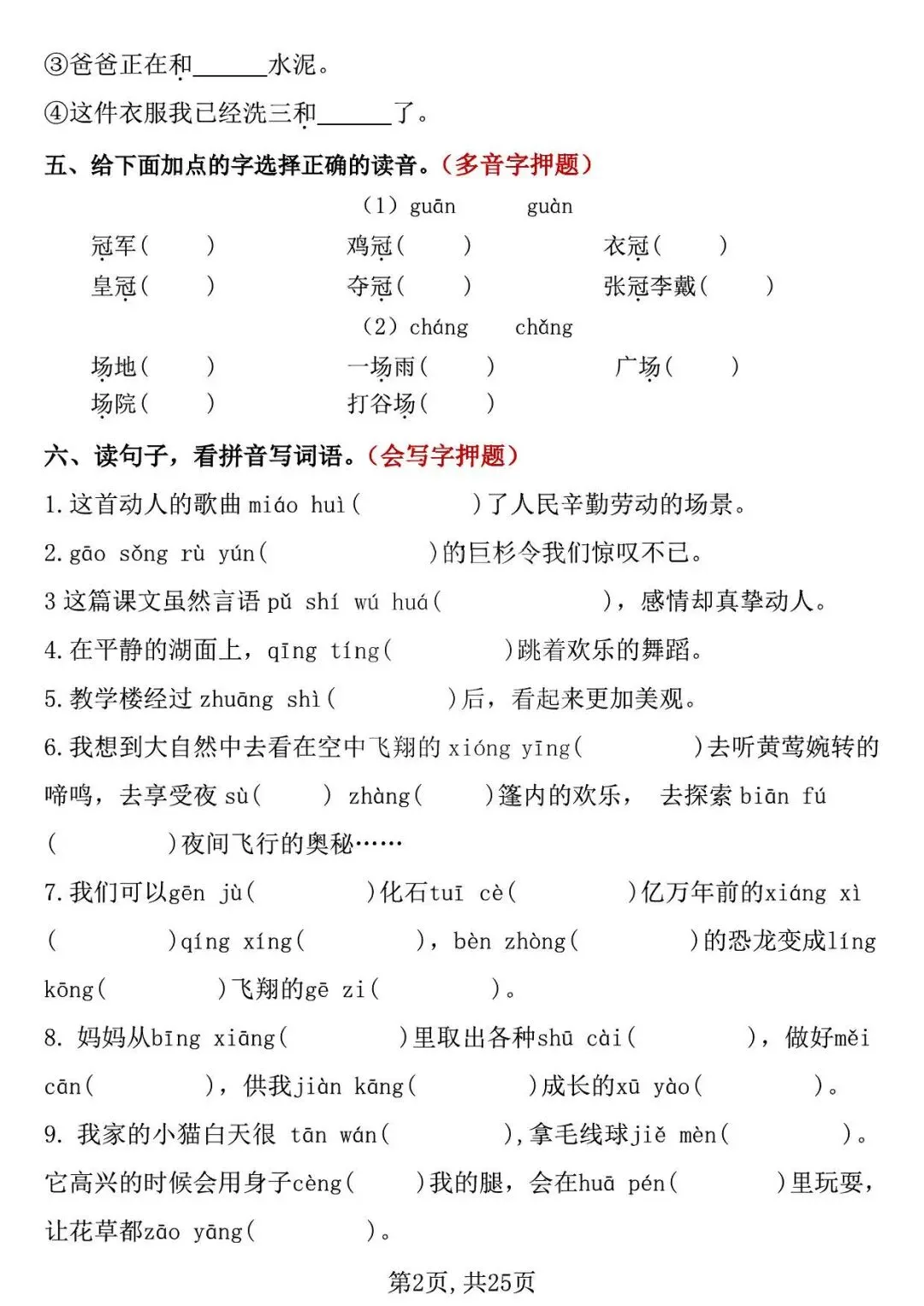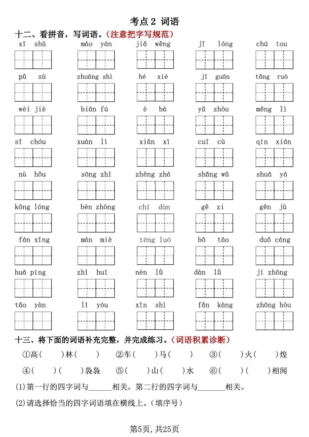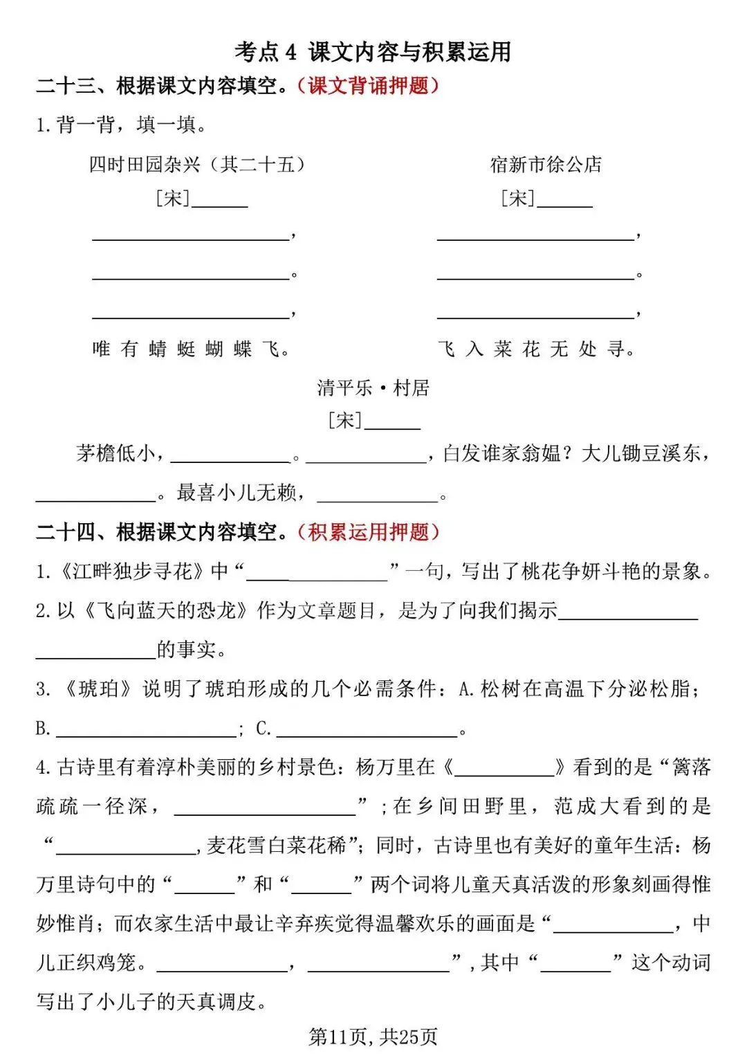 四年级下册语文期中复习专项押题版(含答案),电子版可打印