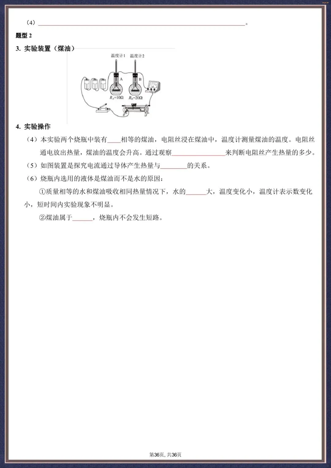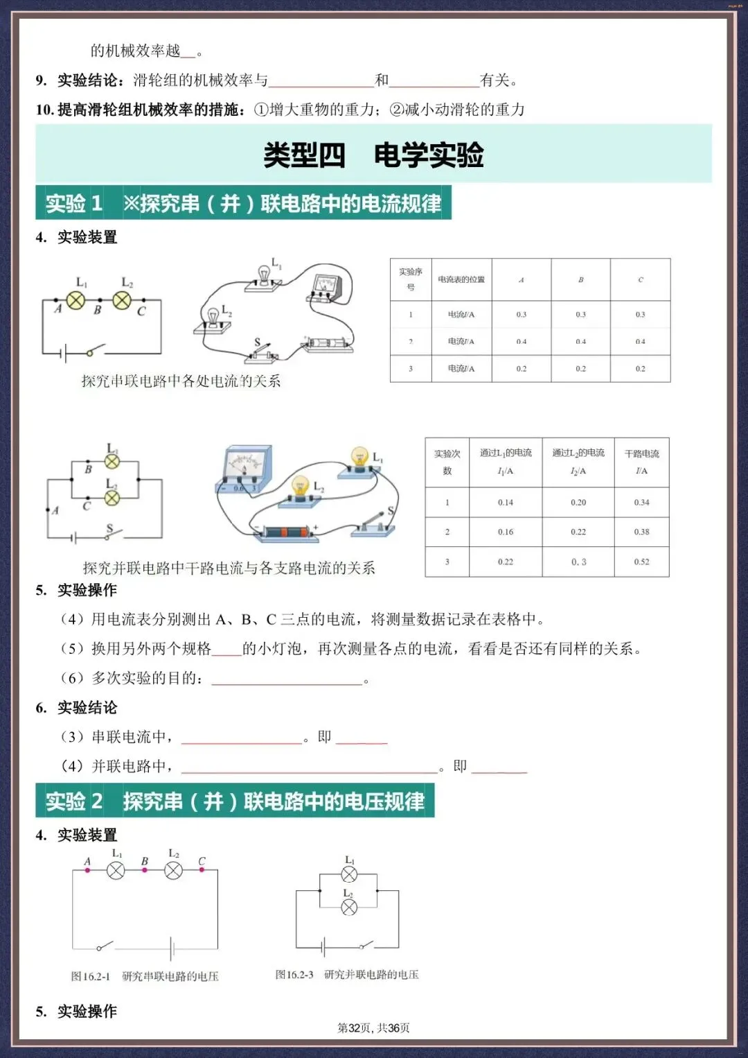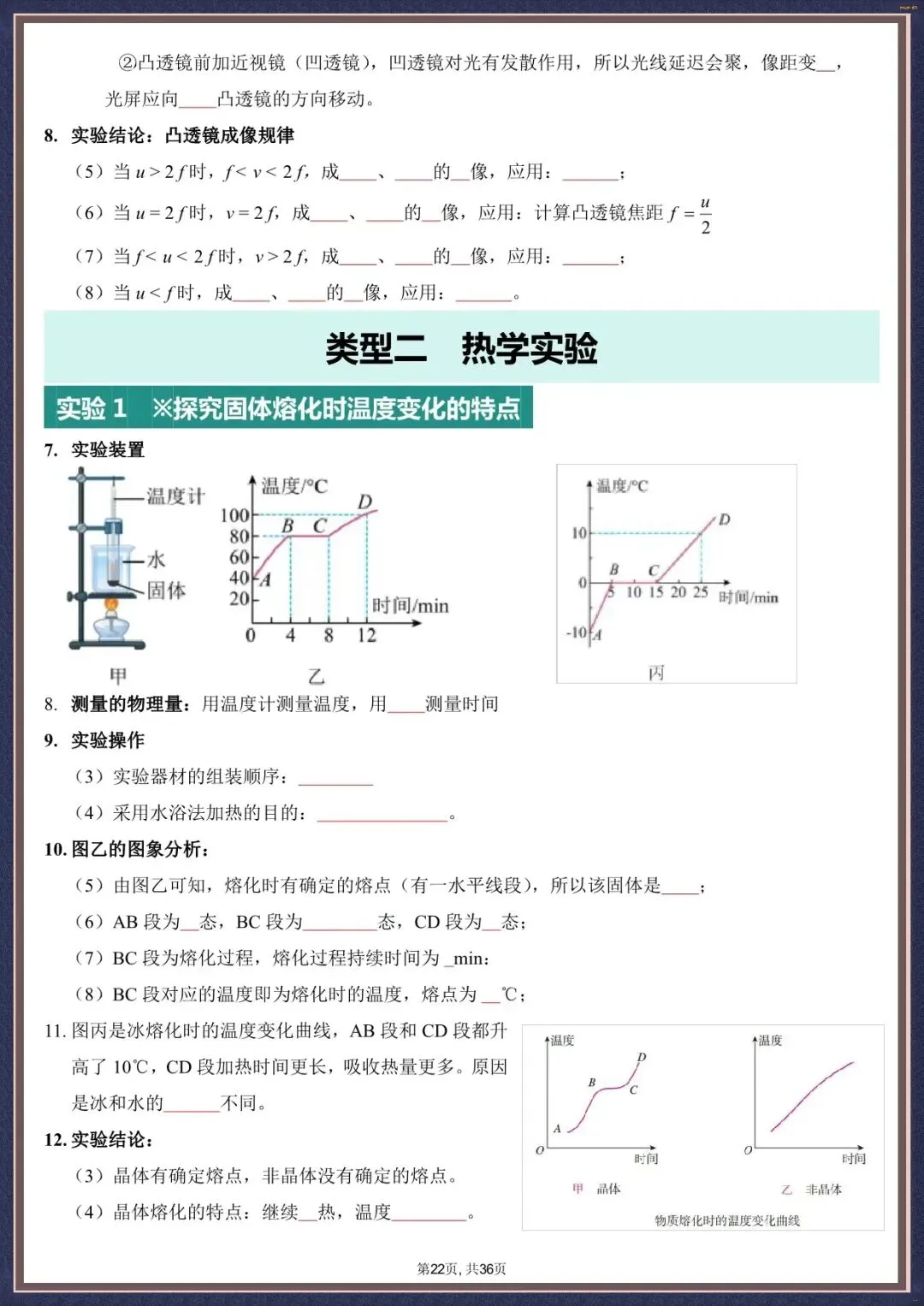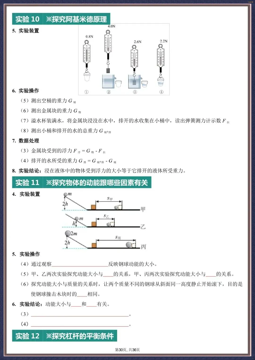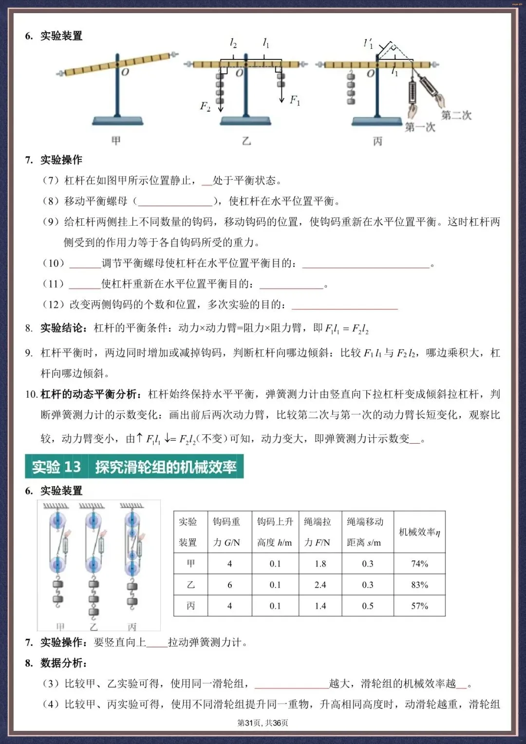夯实考点・2026 中考物理实验填空版汇总 36 页含背诵版(电子版可打印)