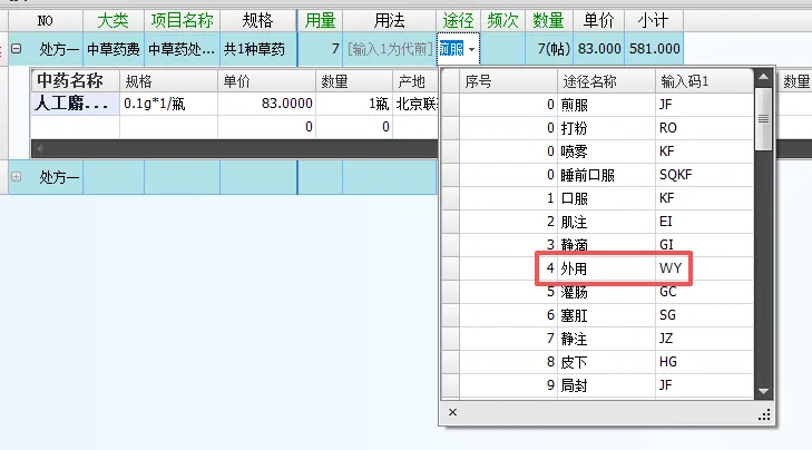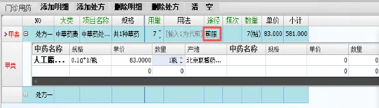 对于外用草药开立处方时需要注意途径信息,默认途径为“煎服”,