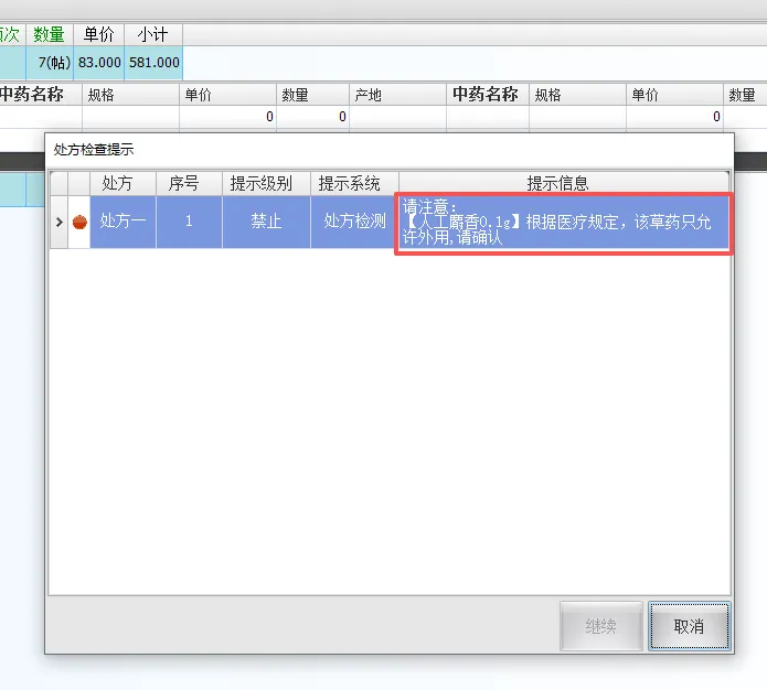 否则保存时会有如下提示,无法保存处方