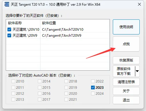 双击打开“Tangent_天正T20V7-V10补丁.exe”