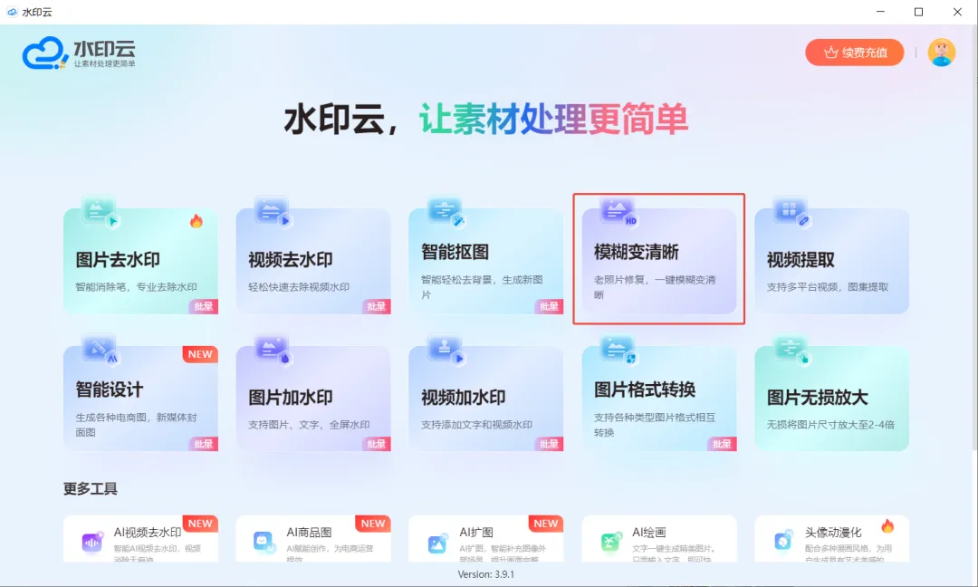 1、打开网页 / APP / 小程序,进入图片变清晰模块