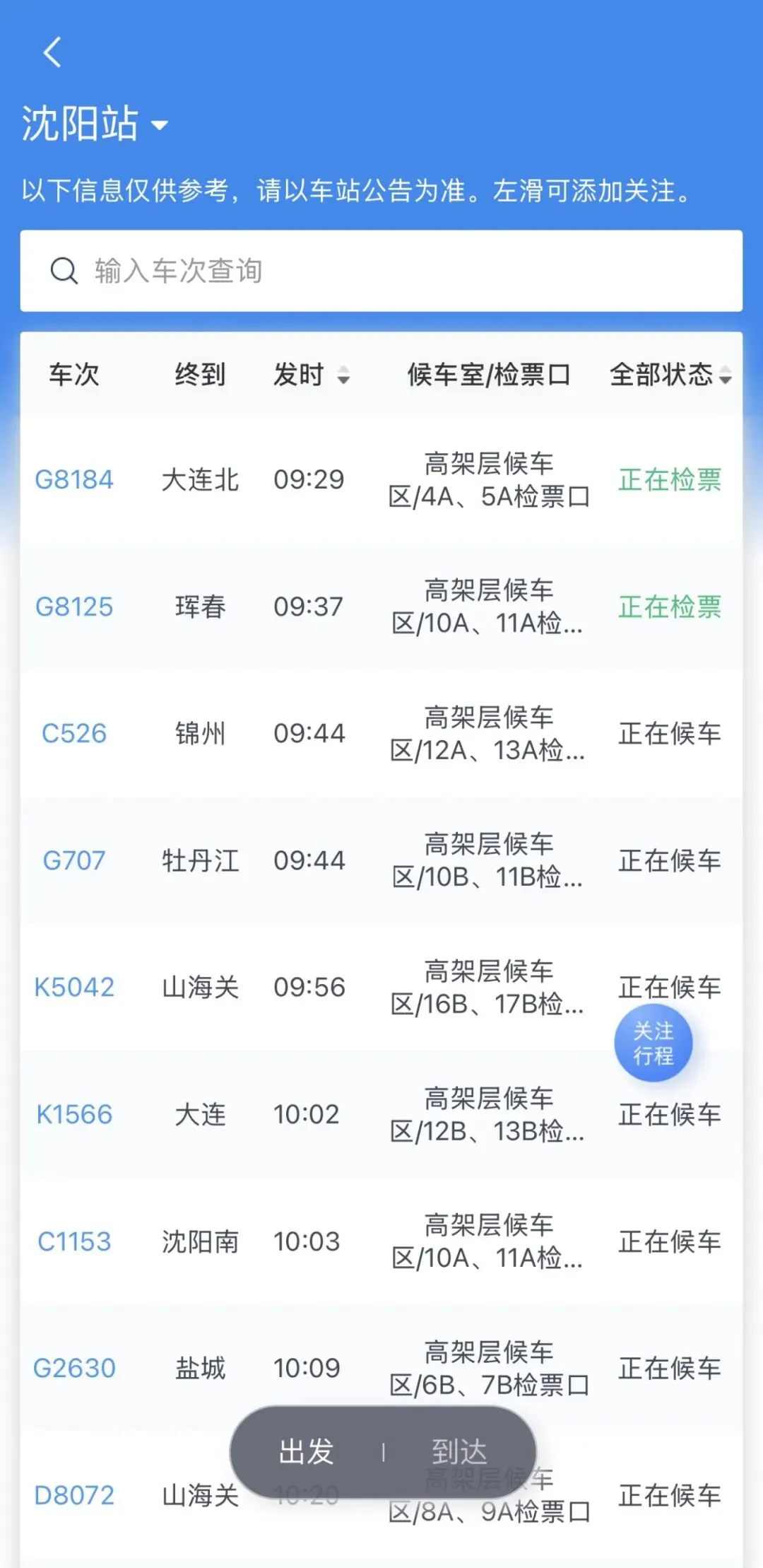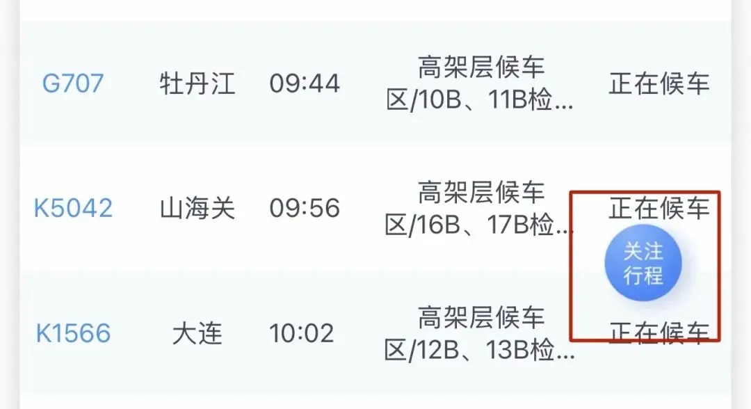 各个车次的“进站信息”