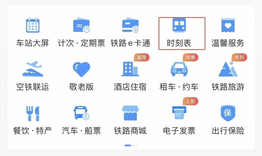 在12306App首页点击“时刻表”