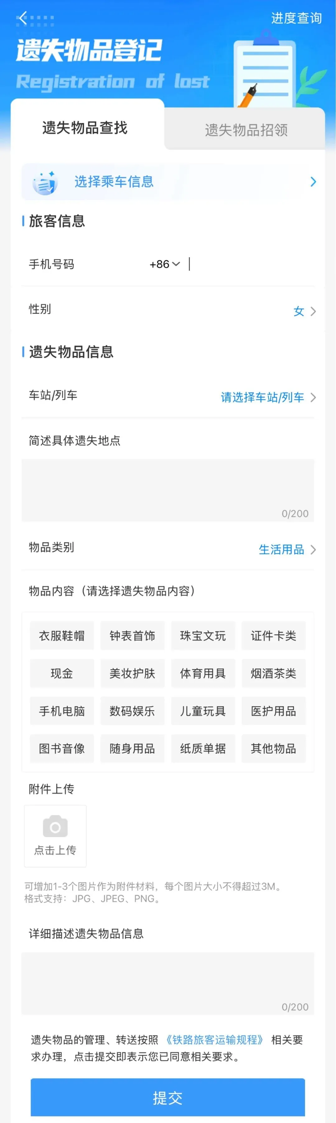 遗失物品查找