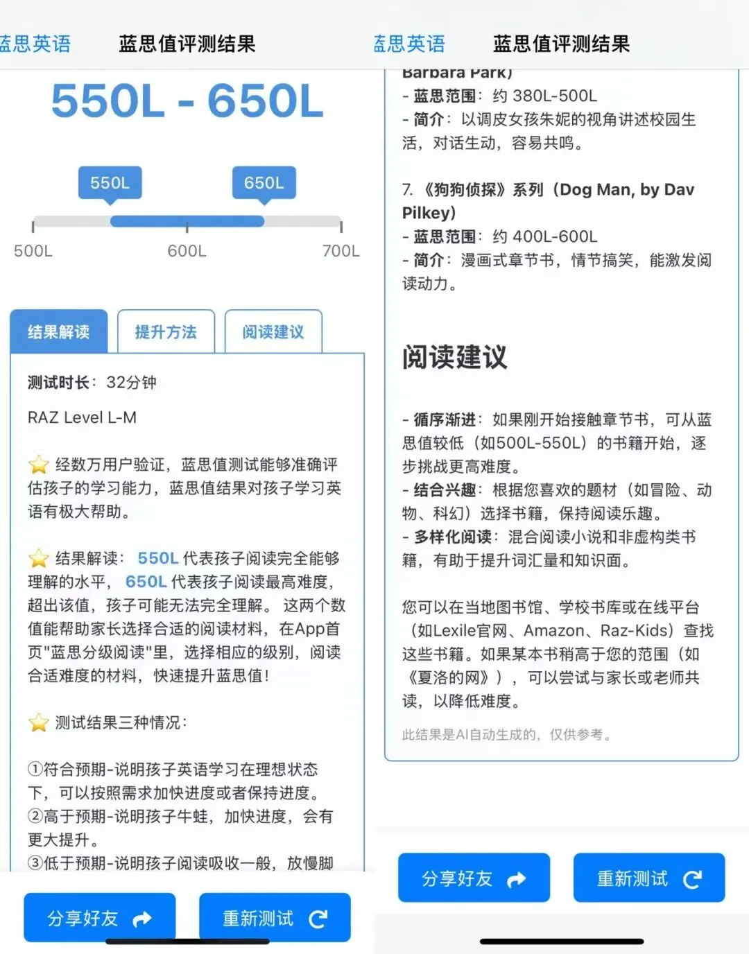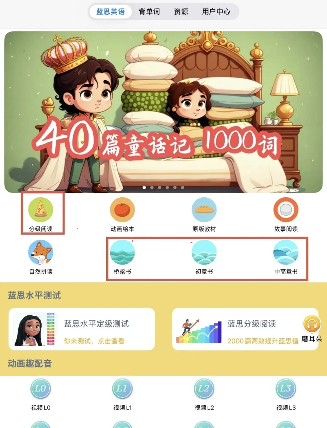 有基础的宝子,第一步一定要做蓝思分级测试,(免费测试)测出自己的蓝思值,系统会自动匹配适合你的学习内容和读物难度,不用自己瞎找、瞎猜,省超多时间。