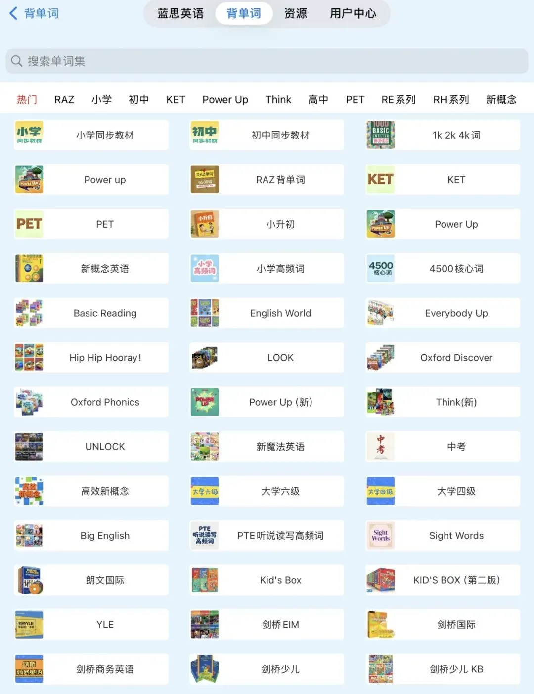 校内同步单词、KET/PET、雅思托福,还有分级阅读配套单词,种类超全。不是那种死记硬背的模式,而是发音跟读+选词练习+拼写默写,再加上智能复习,循环记忆不容易忘。