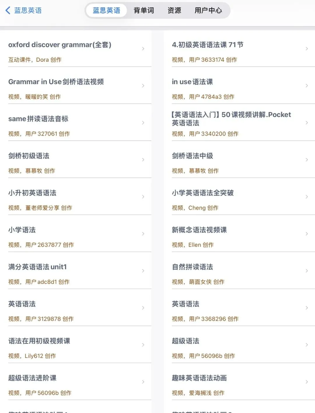 语法按难度分级,有系统的语法名师教学视频,从基础时态到从句、句型,一步步讲解,系统补语法真的很省心。