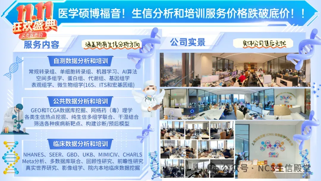 不想做实验,没数据,还想要快速发表文章,没问题的!公共数据库就是我们的数据宝藏!没思路不用担心,作为专业的生信团队,我们很乐意为您效劳,提供研究路线设计和数据挖掘分析,扫码联系我们吧!