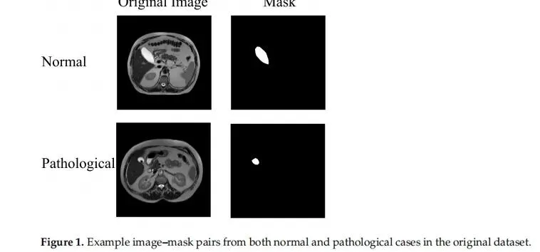 1.数据准备:从医院档案中收集T2加权轴位MRI图像,由经验丰富的放射科医生选择最佳显示胆囊的单张切片进行标注(胆囊边界和结石),构建包含788个图像-掩码对的数据集,并按比例划分为训练集、验证集和测试集。