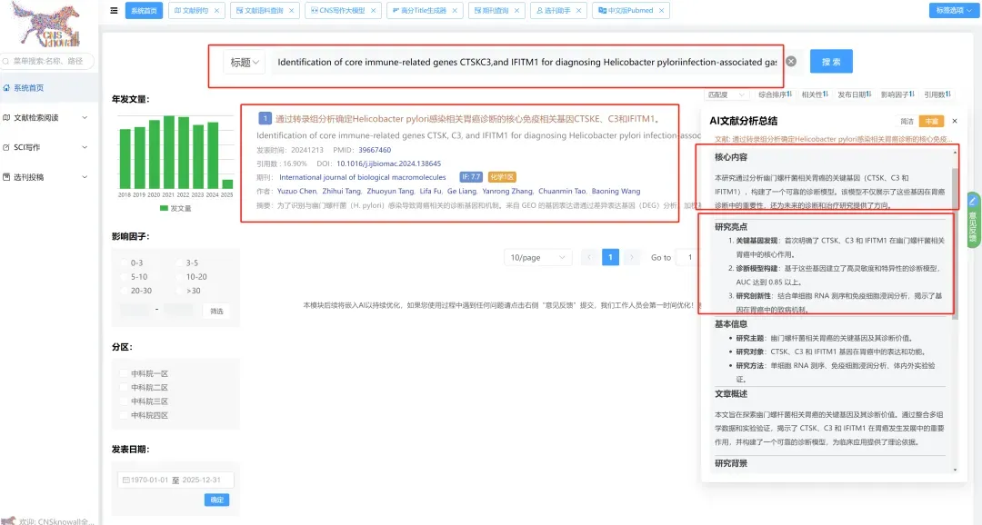 CNSknowall 平台 Pubmed+AI 快速提炼