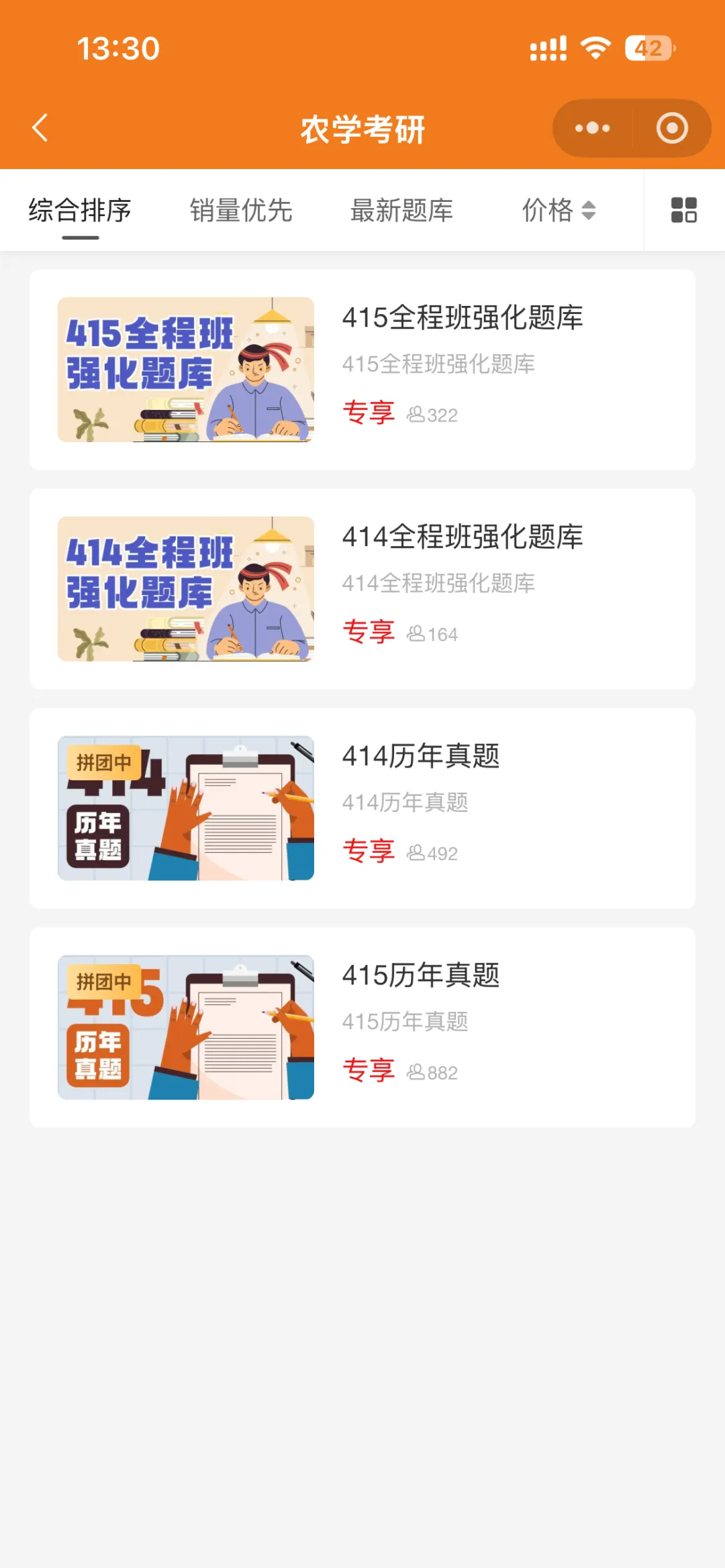 分门别类,414、415题库历年真题、模拟试卷随便刷,对应科目主流教材常用题库等,贴合考试大纲,经过把关筛选出来的题库内容,做到以题带学。