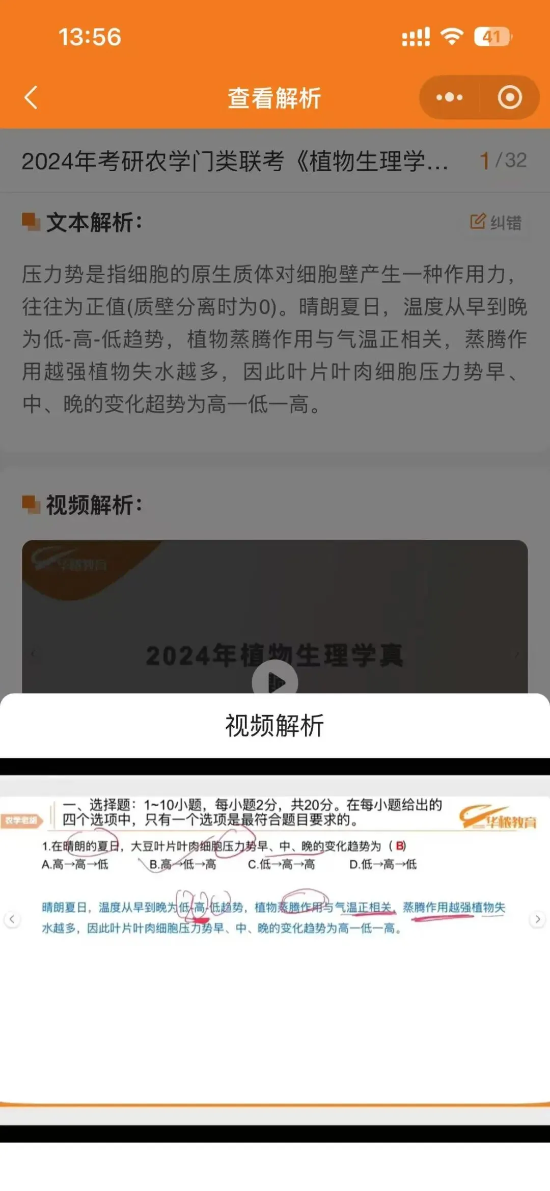 文字解析下边是各科老师录制的解题视频,保证每道题边做边学,学了就会!