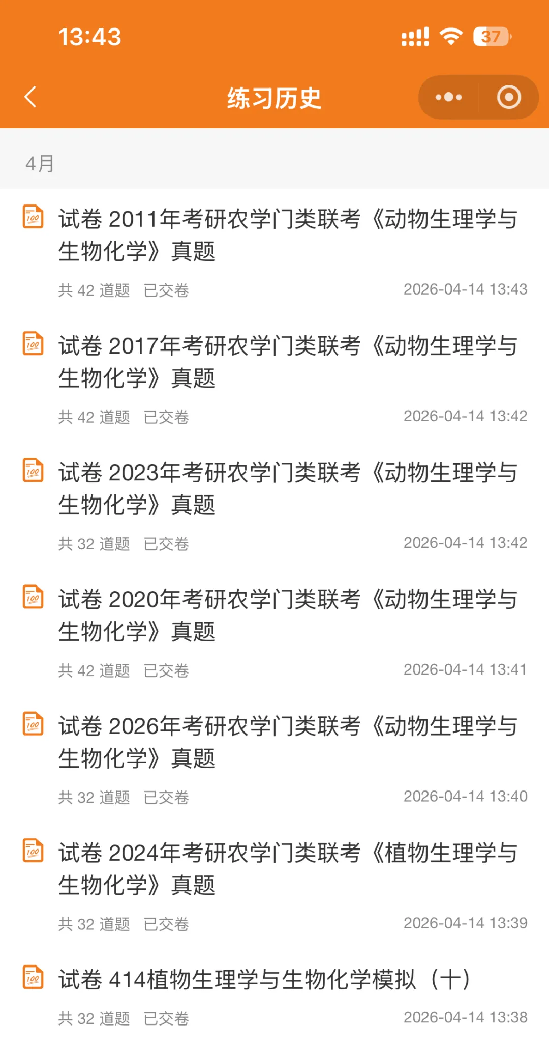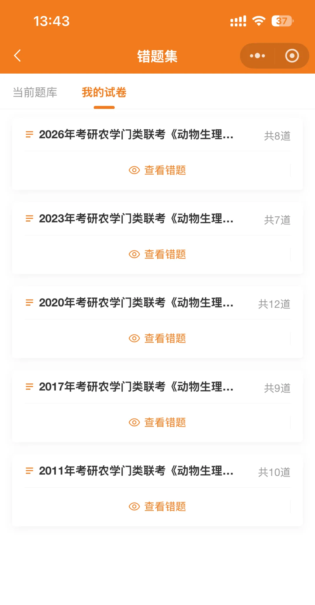 做过的真题、试卷会在这里显示,可以看自己做题进度、做题量,方便复盘。