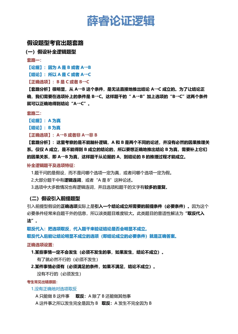 本资料为薛睿老师考研管综《论证逻辑笔记》完整高清电子版 PDF 。内含各类型题目思路详解,纯净无水印,建议搭配网课食用效果更佳哦!