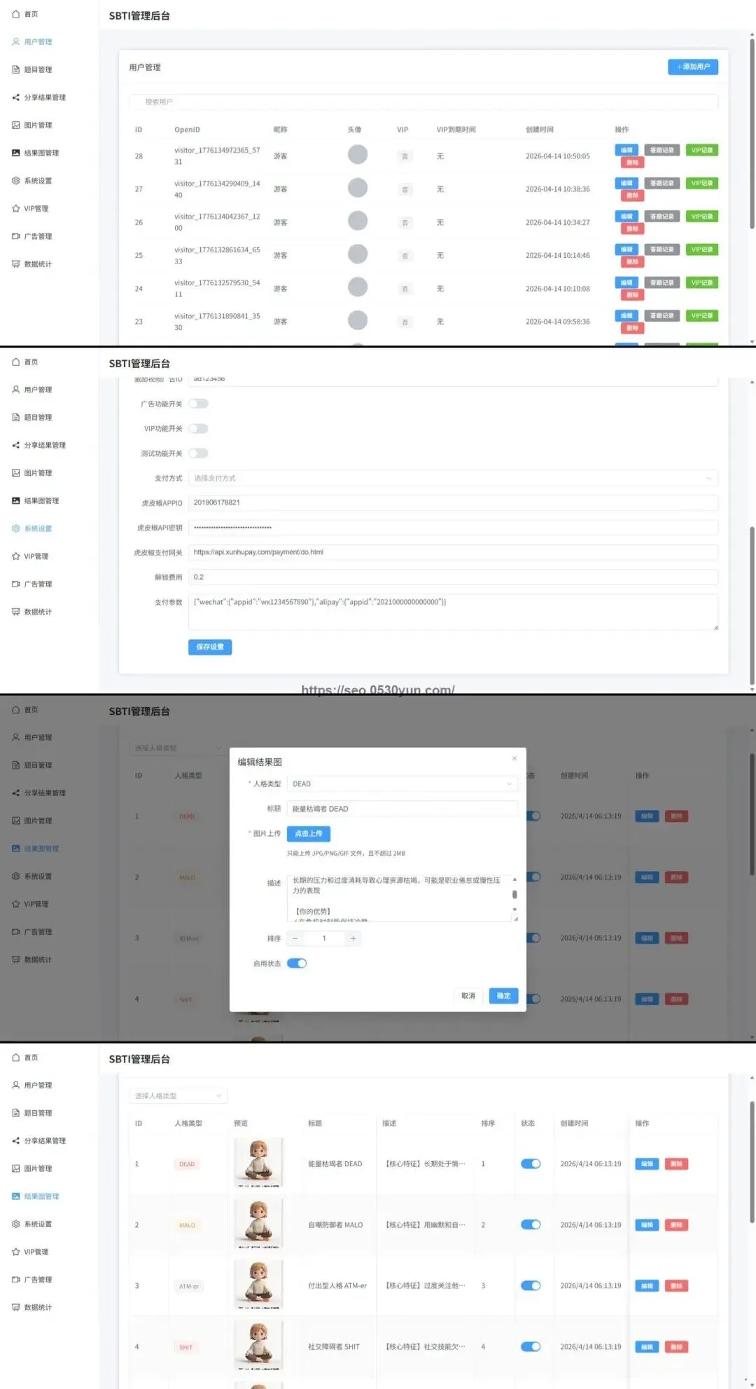 SBTI人格测试系统完整源码 | 全栈项目 | 支持付费解锁和病毒式传播 | 含后台管理系统