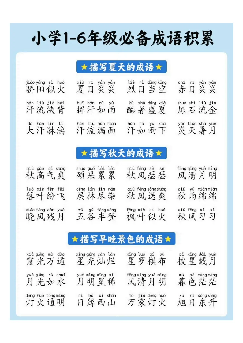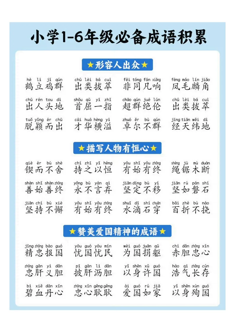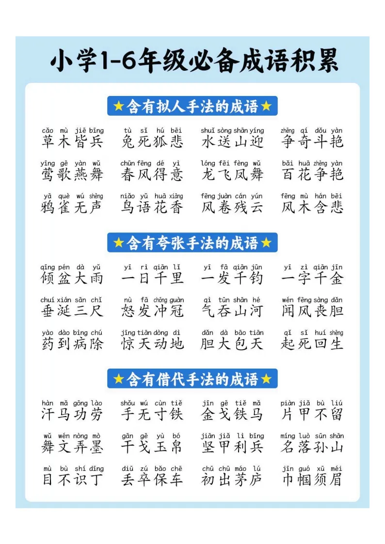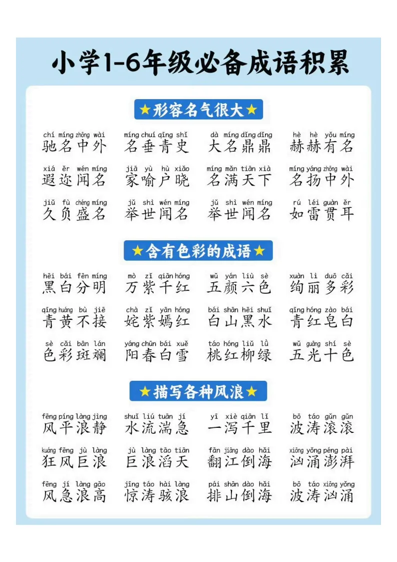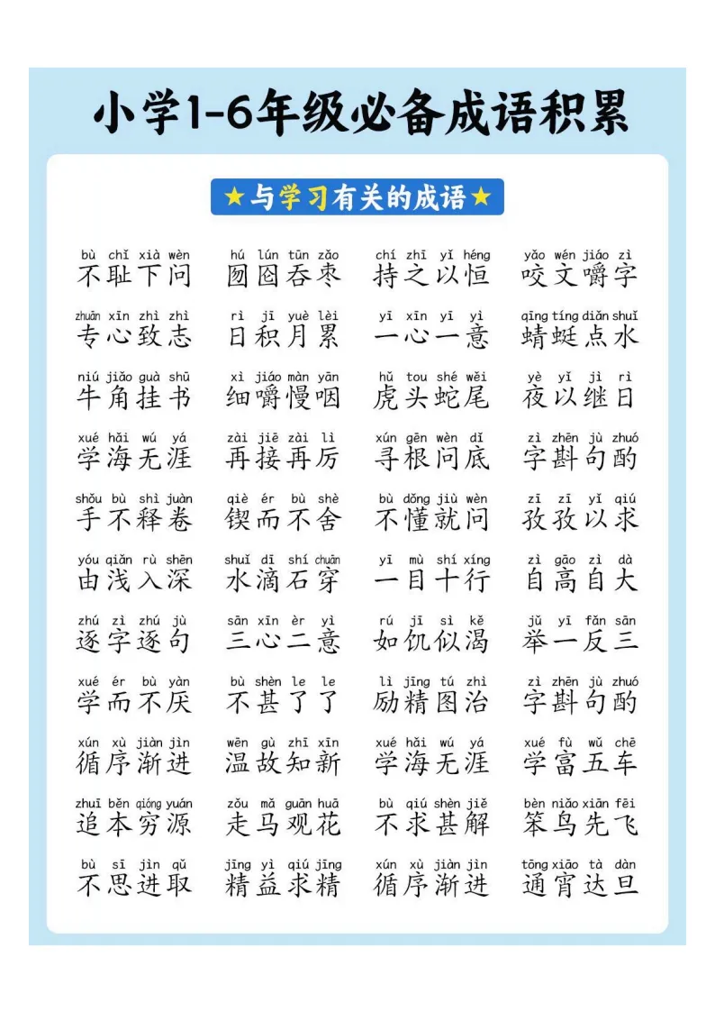小学1-6年级必备成语积累|电子版可打印