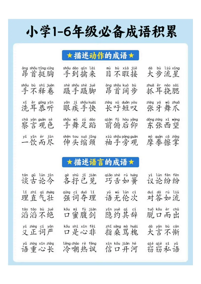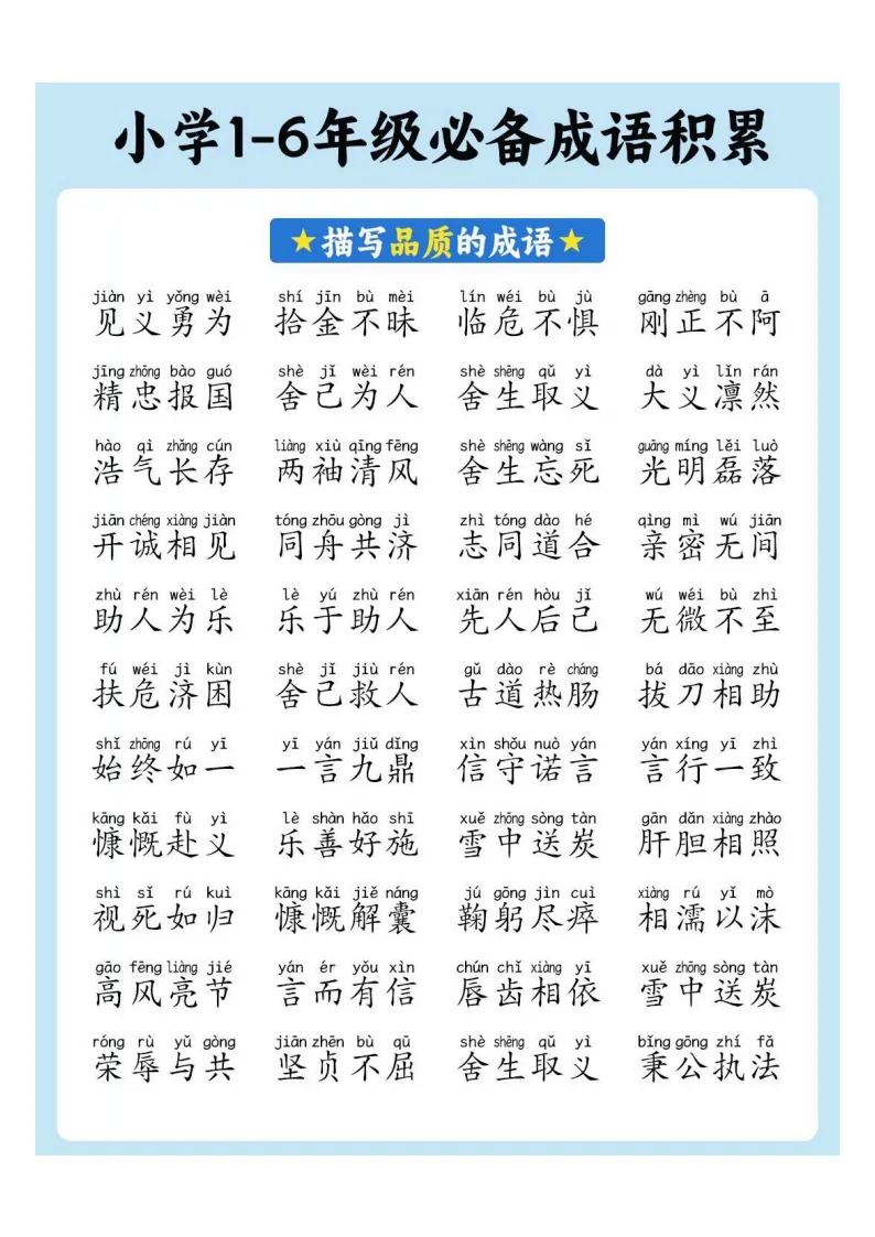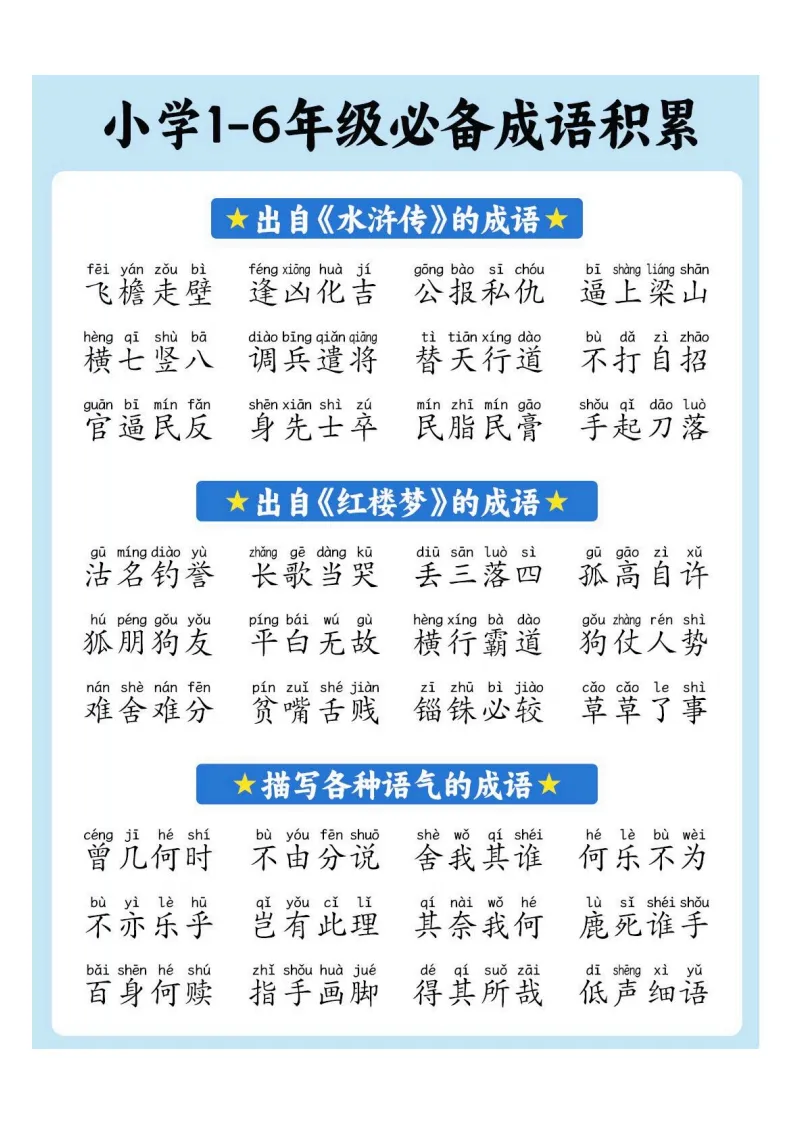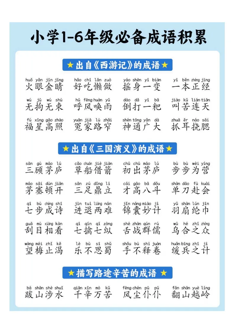 小学1-6年级必备成语积累|电子版可打印