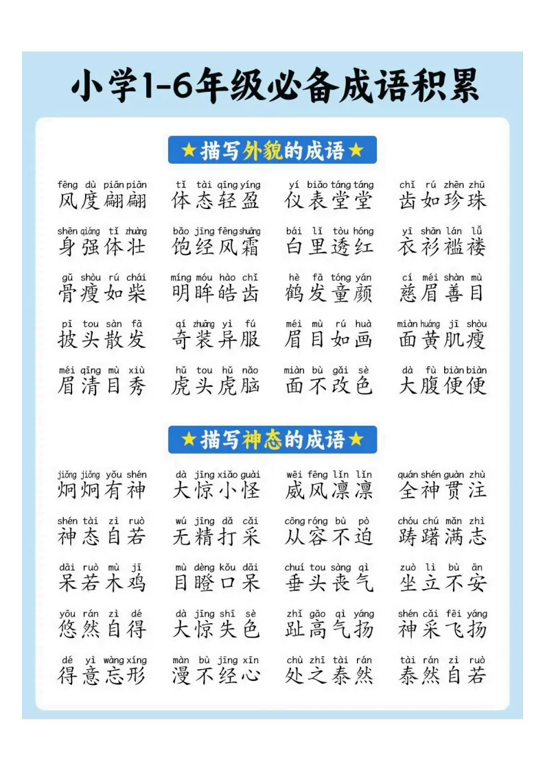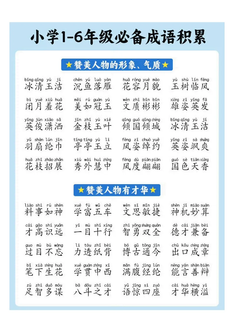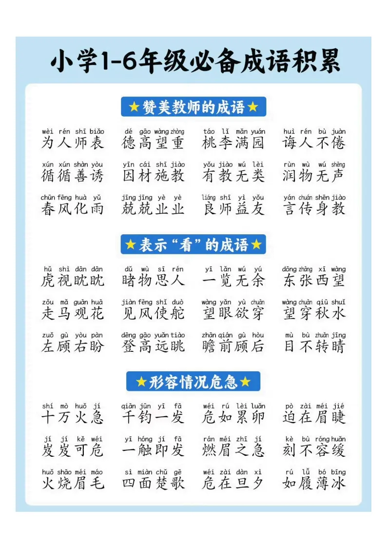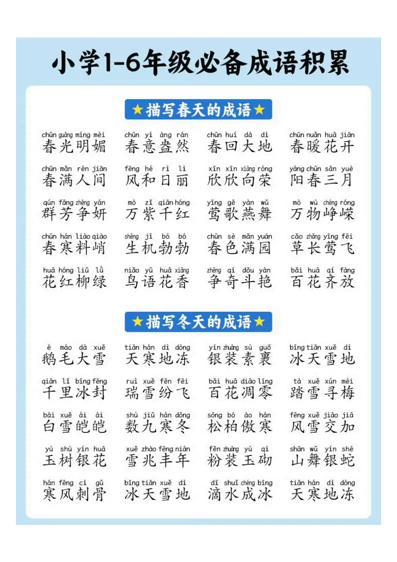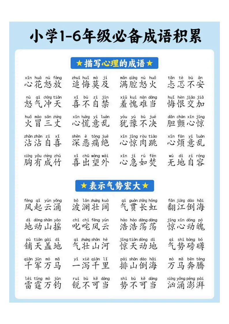 小学1-6年级必备成语积累|电子版可打印
