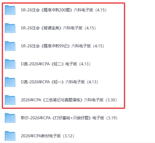 2026年CPA电子版资料大量更新(4.14) 微信推送改版啦,为了不错过最新的考试资讯和资料分享,记得把学姐设为【星标】呀~ 星标方法很简单:点击上方蓝字【财会学姐】→点击右上角【…】→设为星标 关注下方两个公众号,防止失联。 2026年东奥会计类网课+题库免费使用啦! 点击下方↓“阅读原文”↓免费自取!