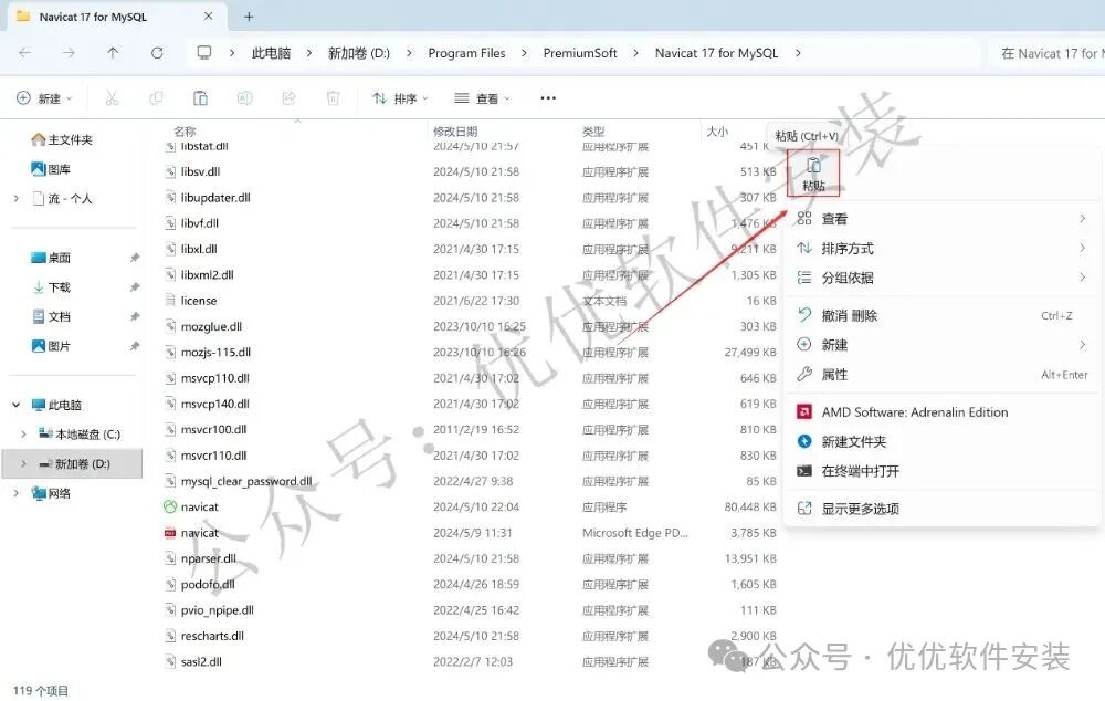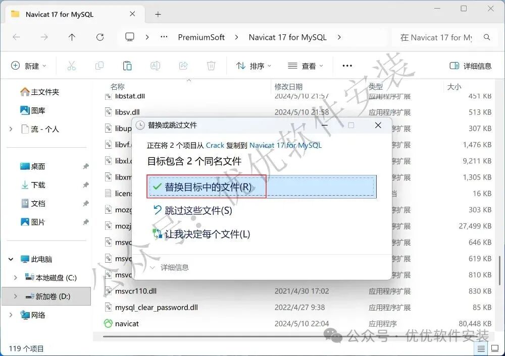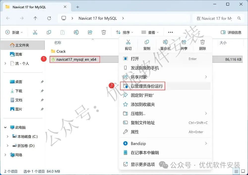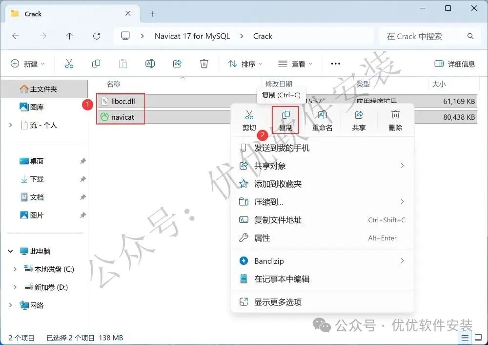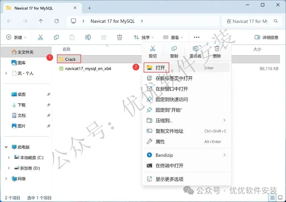 11、回到Navicat 17 for MySQL文件夹,找到【Crack】文件夹,右键【打开】它