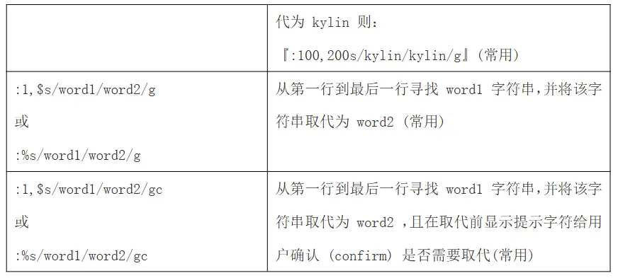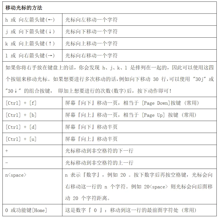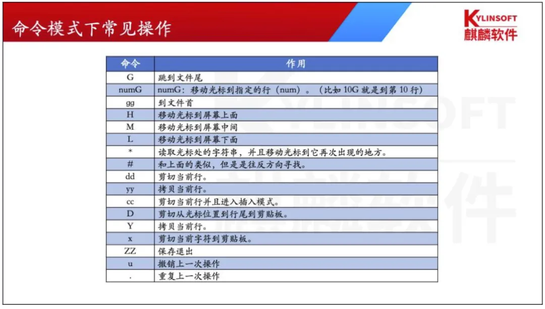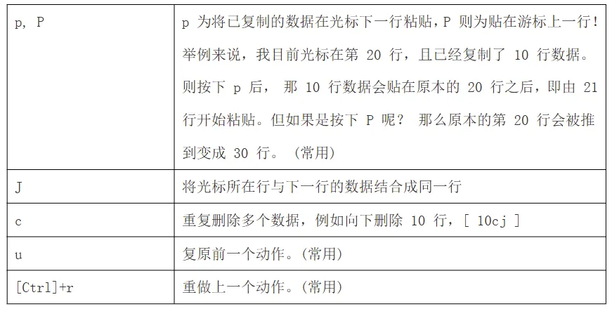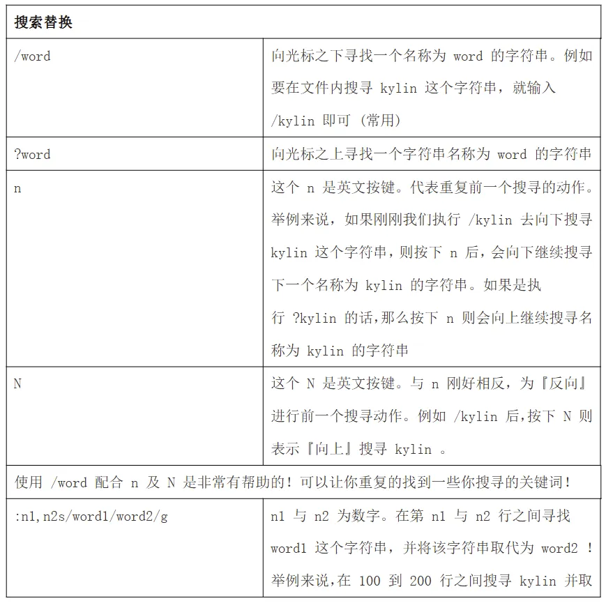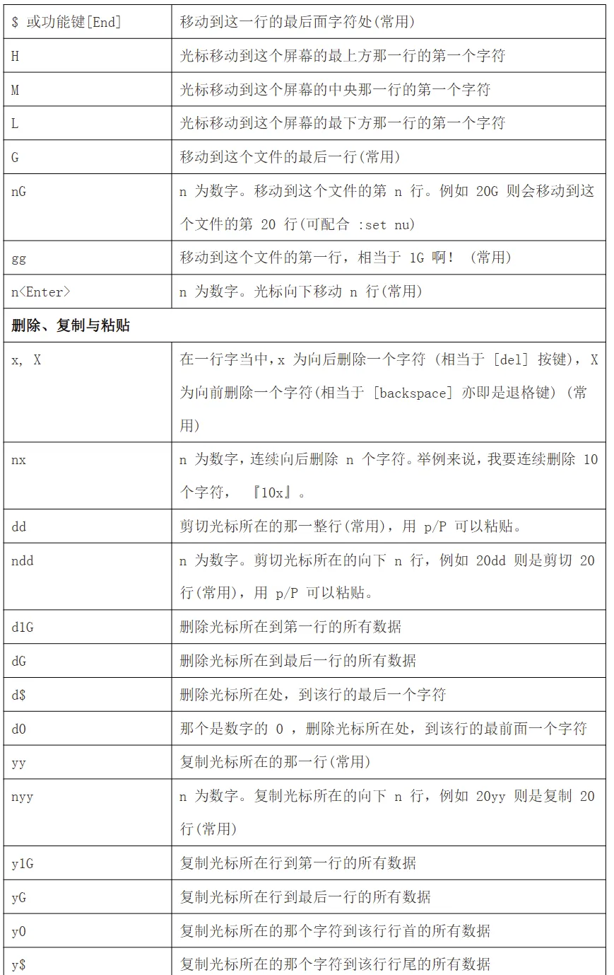 命令模式可用的光标移动、复制、粘贴、搜索、替换等