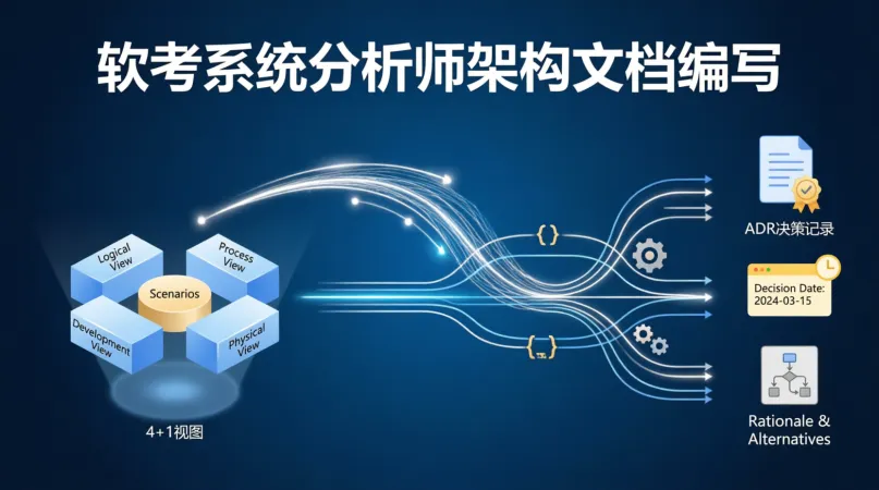 架构文档不是形式主义,而是设计思维的体检报告。在软考系统分析师考试中,阅卷老师寻找的是你的系统性思维与工程化落地能力。掌握4+1视图的精准选型,用好ADR记录决策脉络,严格遵循标准结构编写,你就能在案例分析中稳拿高分。