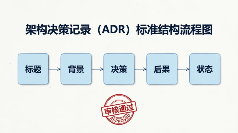 - 识别规范:记录决策理由与权衡 -> 架构决策记录 (ADR)。核心字段:标题、背景、决策、后果、状态。