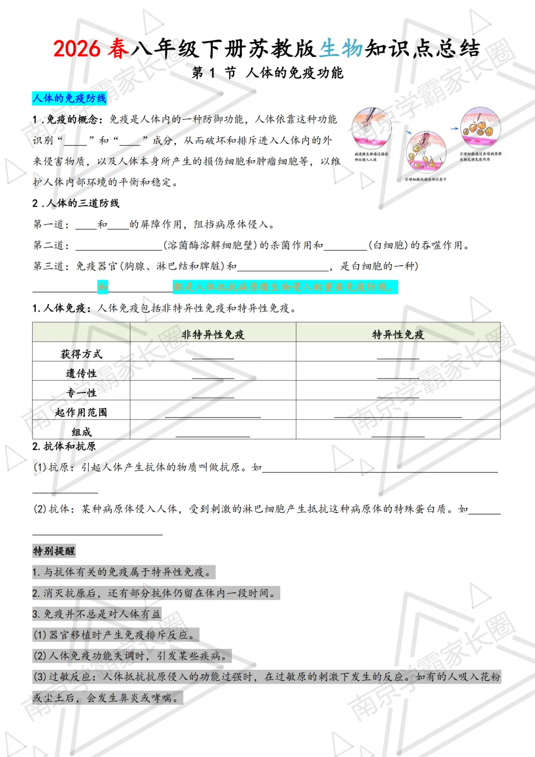可打印!完整版2026八年级下册苏教版生物知识点总结提纲