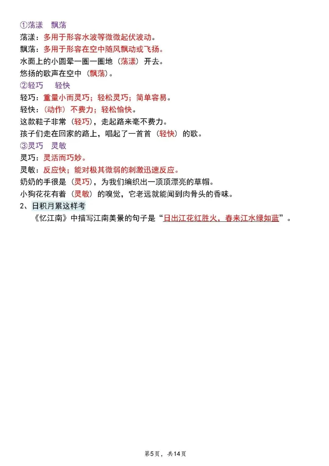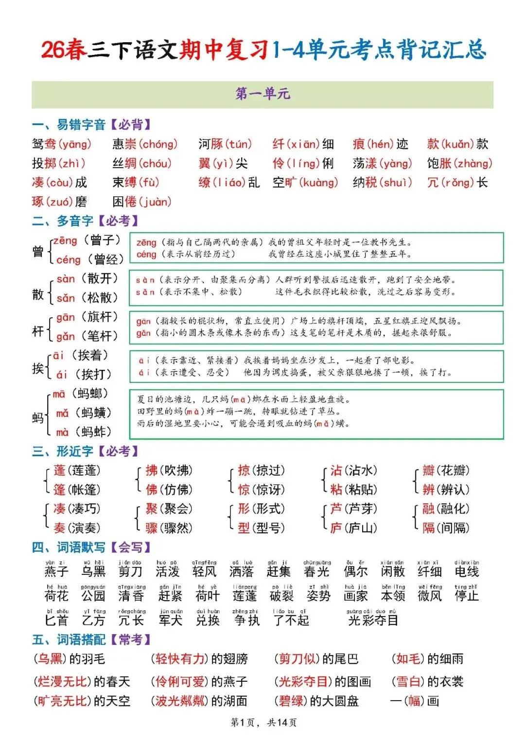 🌸「26春1-6年级(下)语文期中复习14天冲刺 」