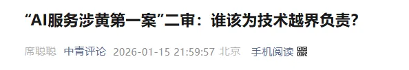今年年初,“AI服务涉黄第一案”曾一度引发社会关注。