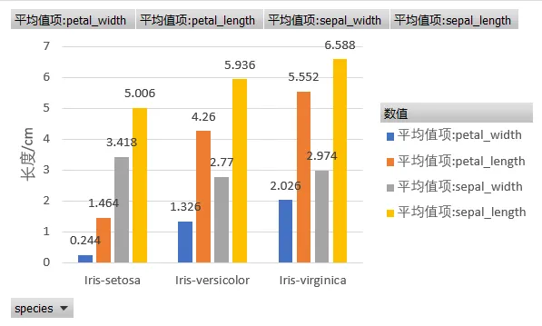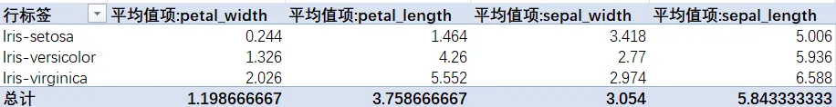 但是,平均值会不会掩盖个体差异?有没有可能存在‘长花瓣但窄花瓣’的怪胎?下一节我们用标准差和散点图来回答。