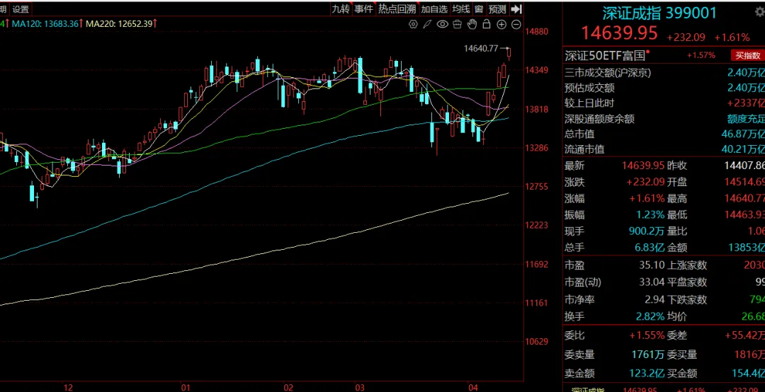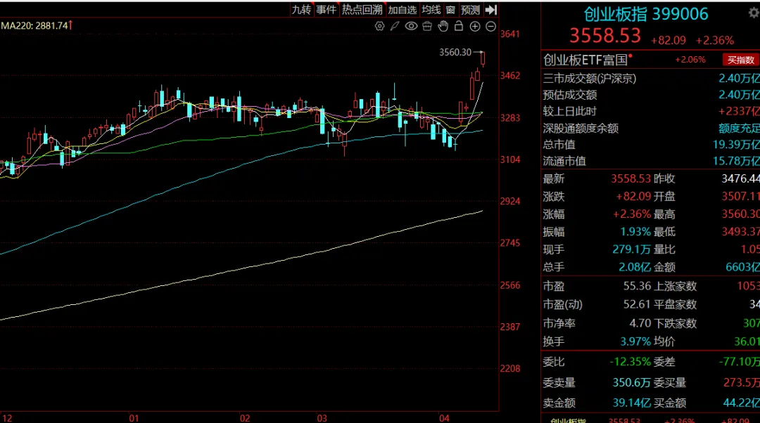 大A上午还在犹豫,在120日线反复争夺,午后1点半甚至几近翻绿,但随机直线迅速拉升,形成V字反攻格局,尾盘半小时甚至出现了加速上涨。