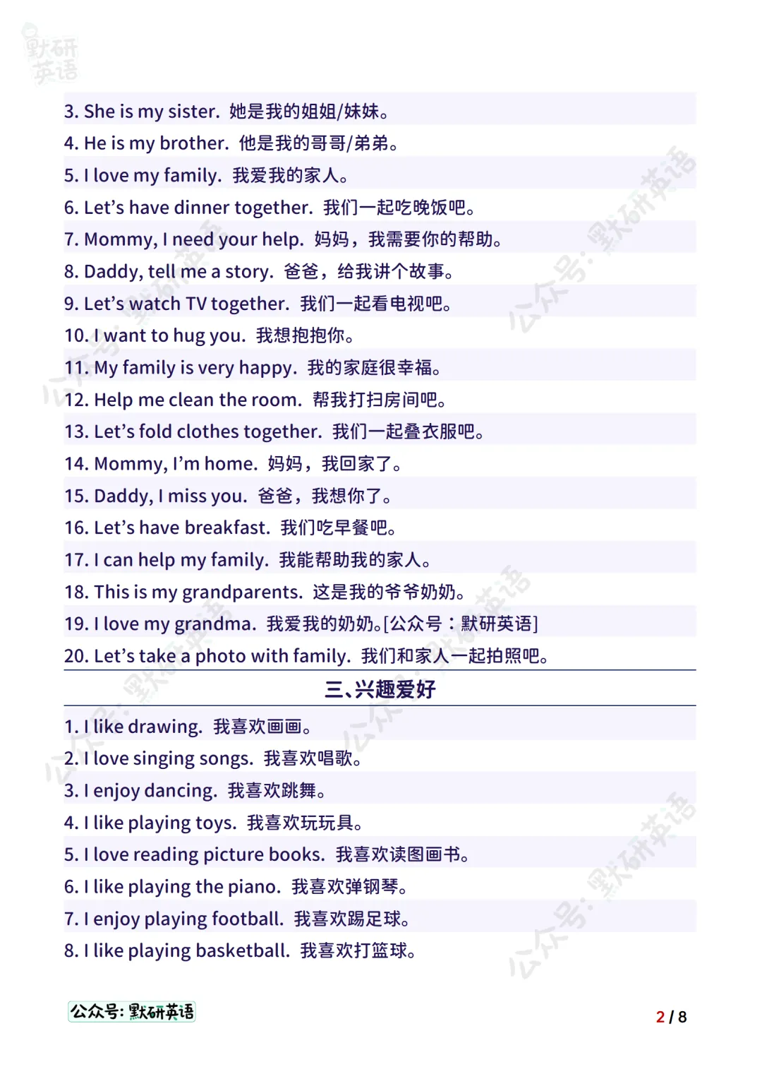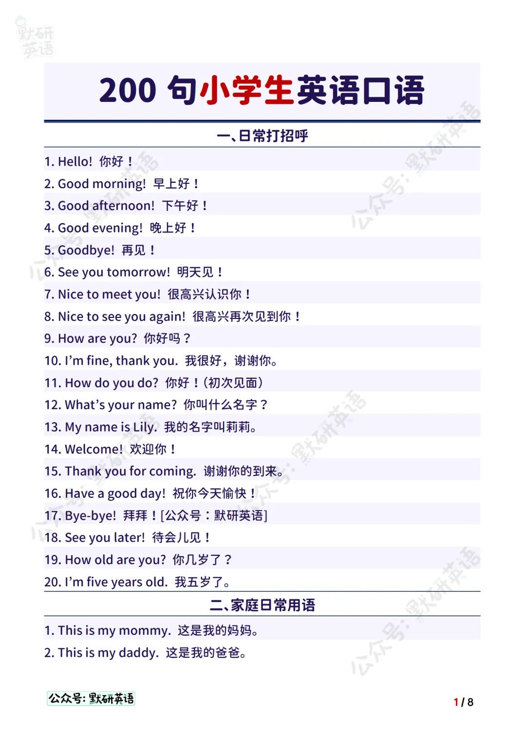 200 句小学生英语口语(附pdf),儿童口语天天练句子,让孩子开口更自信!
