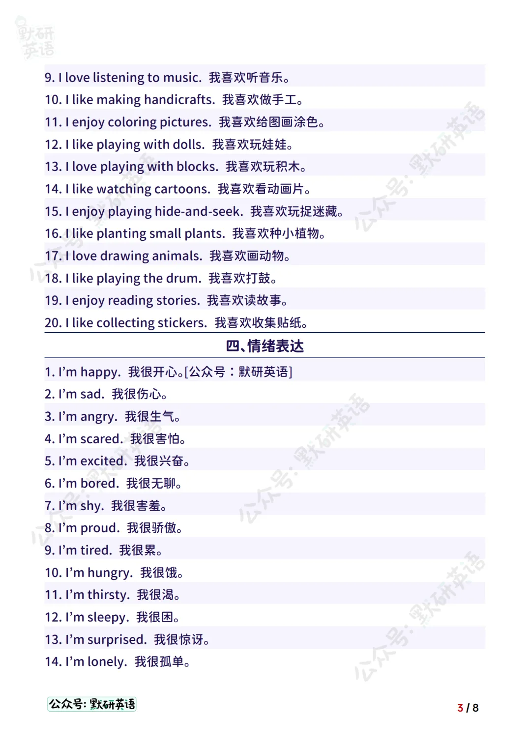 1. I’m happy. 我很开心。[公众号:默研英语]