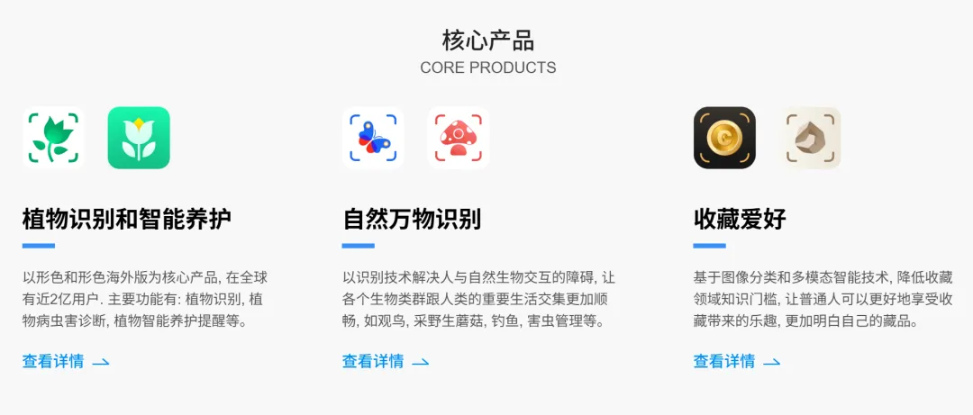 在这个体系中,最接近PictureThis的是一整套围绕“自然万物识别”的产品线。