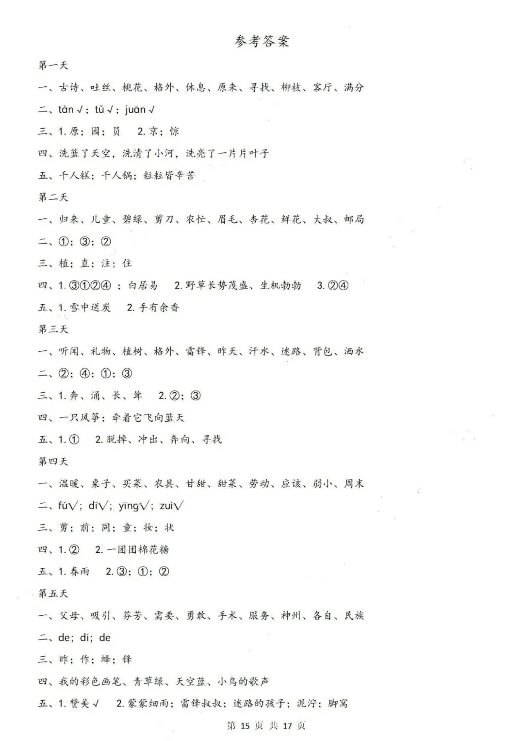 二年级家长救急!期中复习必备的14天冲刺卷来啦!PDF电子版可下载打印期中考试倒计时,二年级下册语文知识点多,怎么复习最高效?这份《26春二年级下册语文期中复习14天冲刺》**绝对是考前必备神器!🎯 为什么它是期中复习首选?✅ 14天科学规划:资料按天划分,每天一页题,考前每天打卡练一练,保持手感又不增加过多负担。✅ 精准直击考点:题型全面对标期中考试!从看拼音写词、易错/多音字辨析,到查字典练习、句子仿写,以及《赋得古原草送别》《咏柳》等必考古诗词的默写,全面扫清基础盲区。✅ 附带详细答案:全套共17页,末尾自带完整的参考答案。家长对照批改又快又准,考前辅导超级省心!趁着考前还有时间,赶紧带娃练起来,把基础打扎实,期中稳稳冲刺高分!💯💡想要高效复习的家长,赶紧安排上吧!