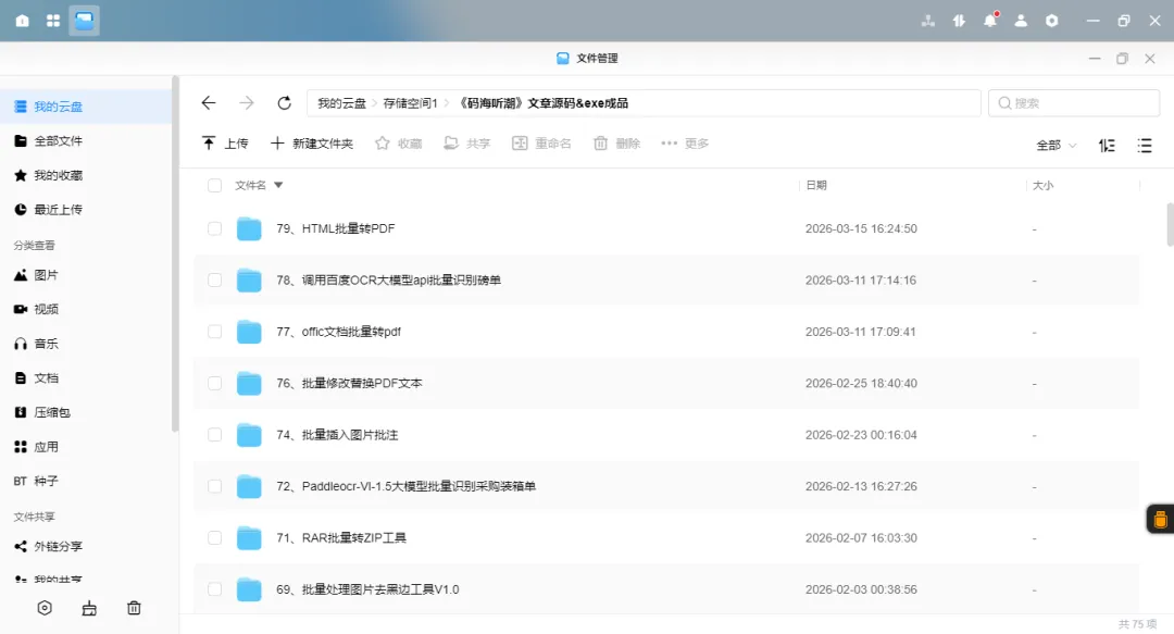 另外,《码海听潮》公众号所有文章码和exe程序已打包好上传绿联nas私有云,有需要的大佬扫一扫上面博主的个人微信二维码,需要的大佬需支付9.9元永久拥有公众号资源(写原创干货费时费力,属实不易),邀请您进入社区群获取下载链接!!,群内提供python办公自动化交流问题,解决问题,且码海听潮微信公众号文章发布会第一时间会更新到群里,非诚勿扰哈!
