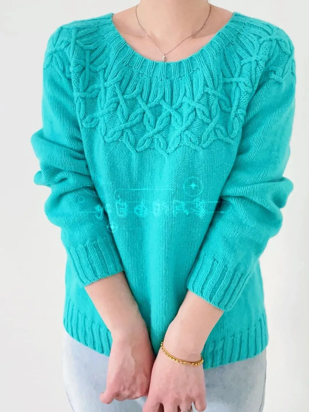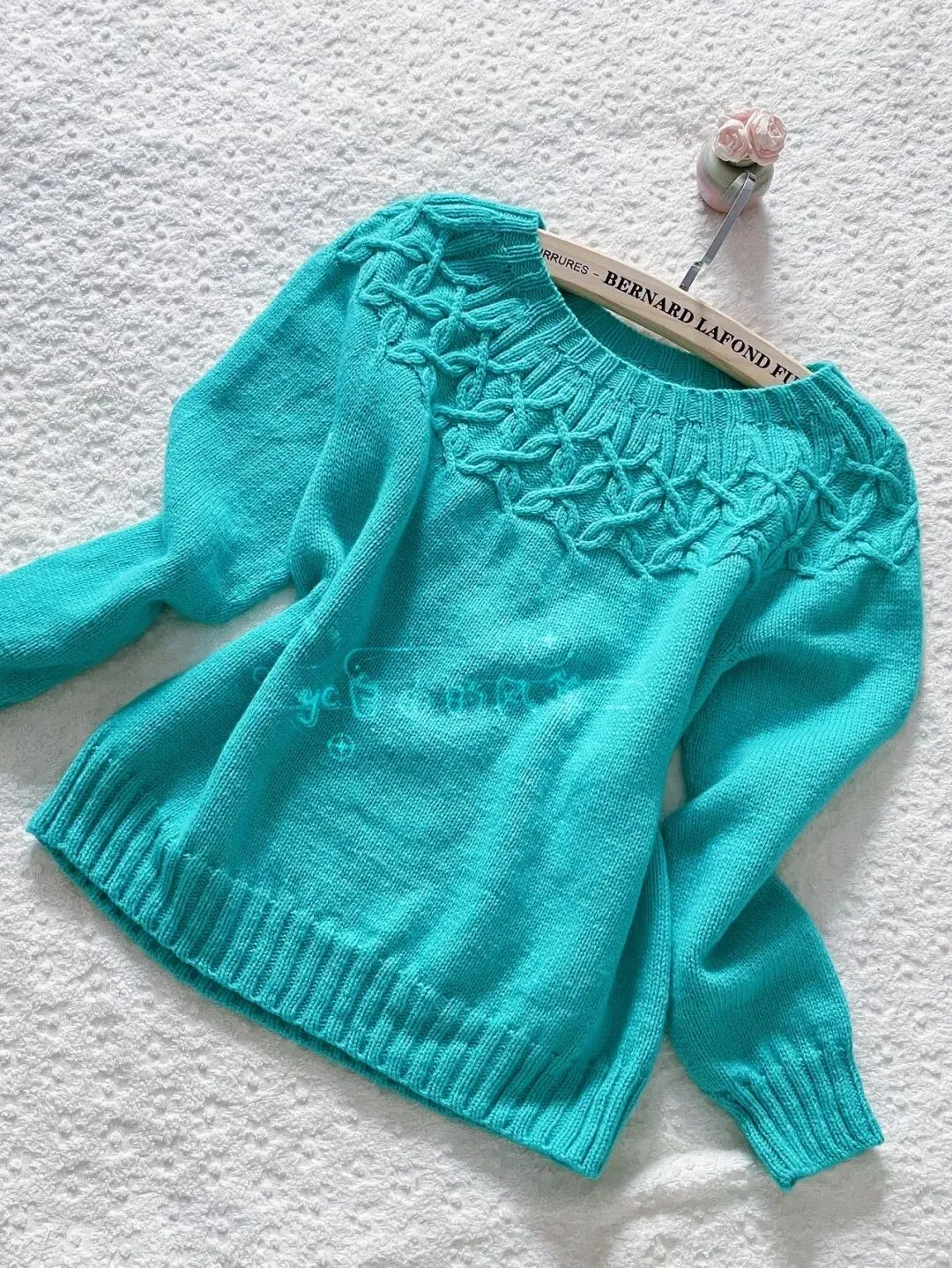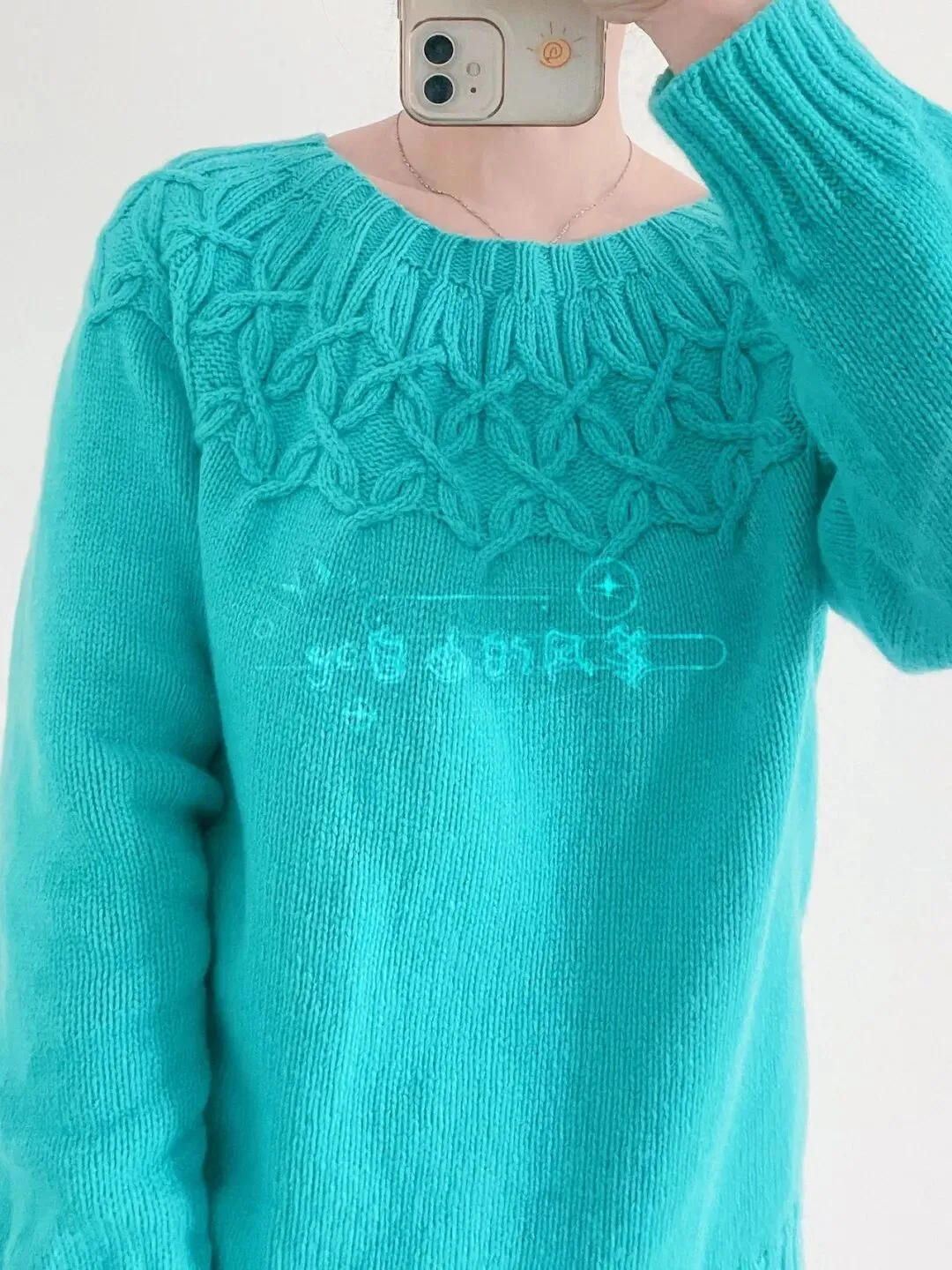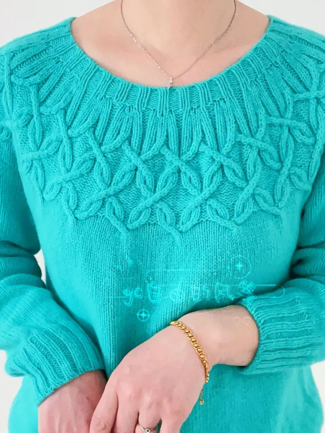 碧环~蒂芙尼蓝圆肩毛衣||附详细编织说明图解