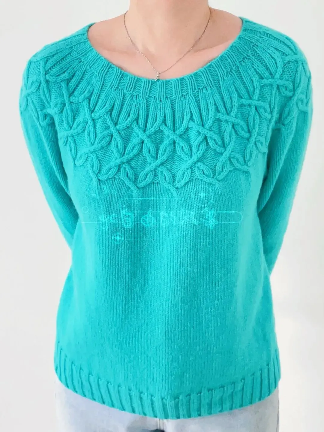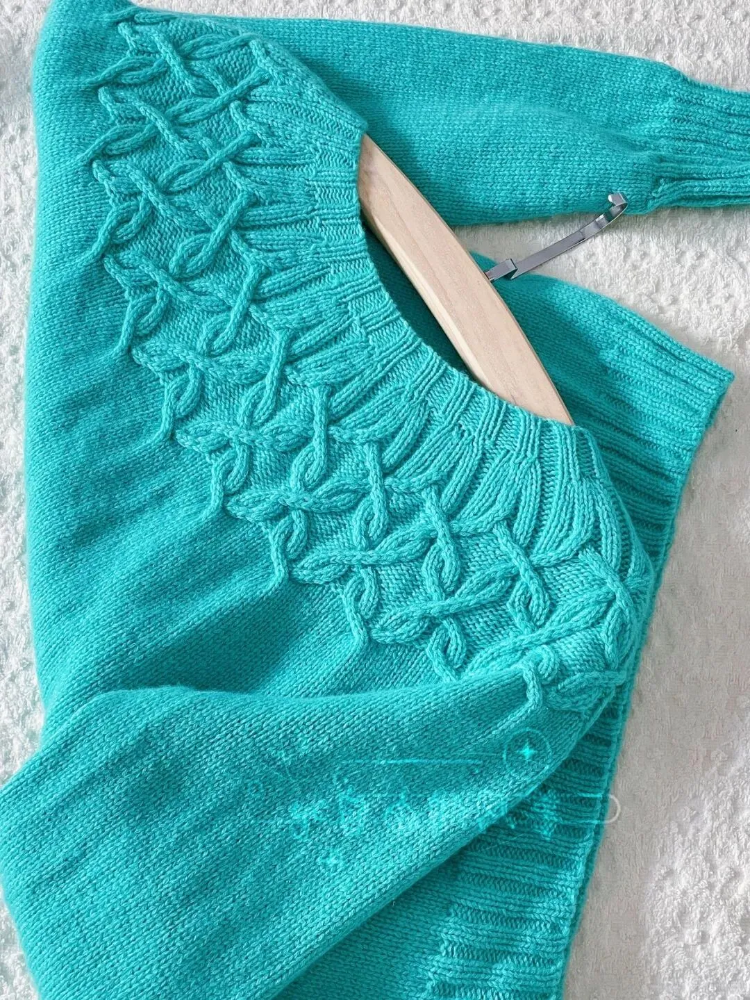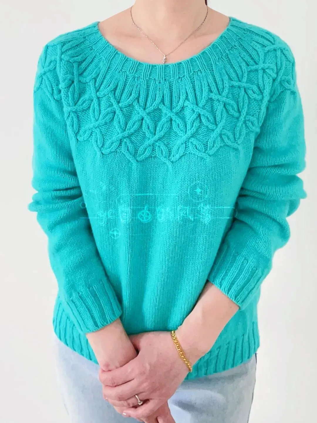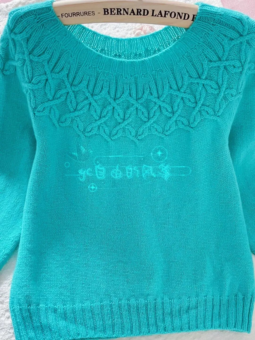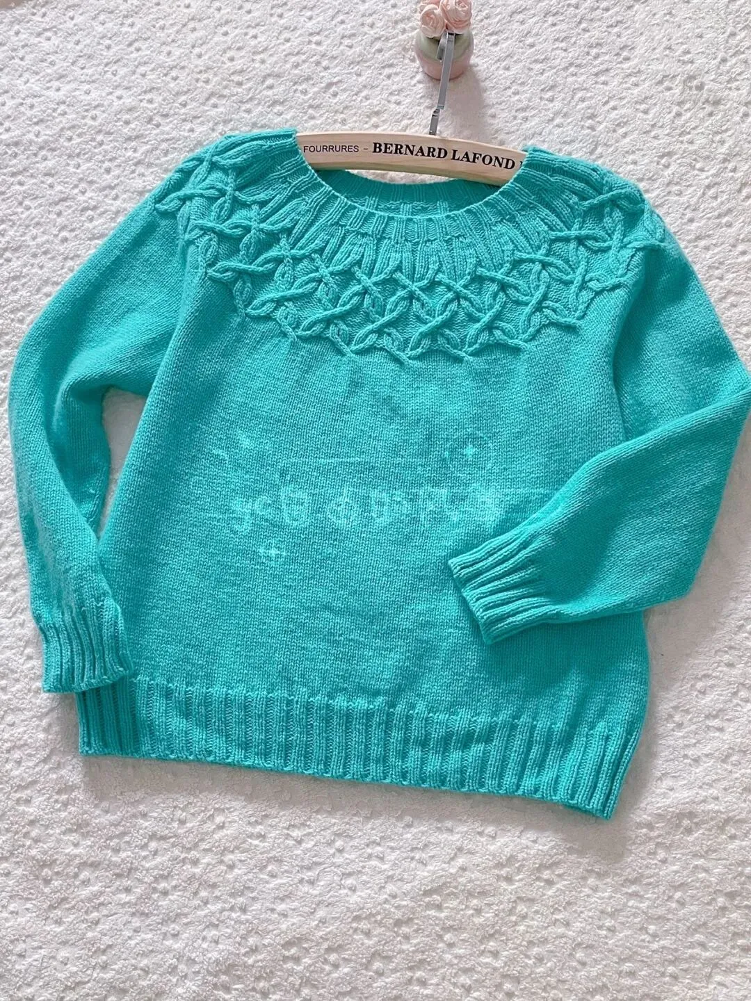 碧环~蒂芙尼蓝圆肩毛衣||附详细编织说明图解