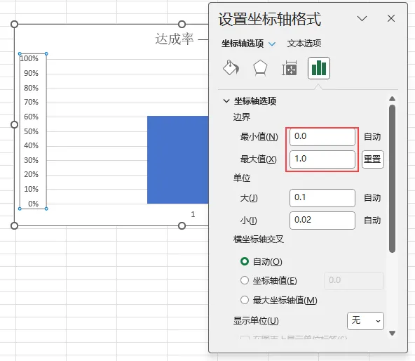 边界「最大值」设置为 1.0(因为达成率是百分比,1.0 对应 100%)。