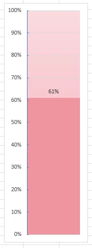 生成一个细长的 “温度计” 图表,红色渐变液柱高度对应 61% 的达成率,刻度清晰,直观展示进度。