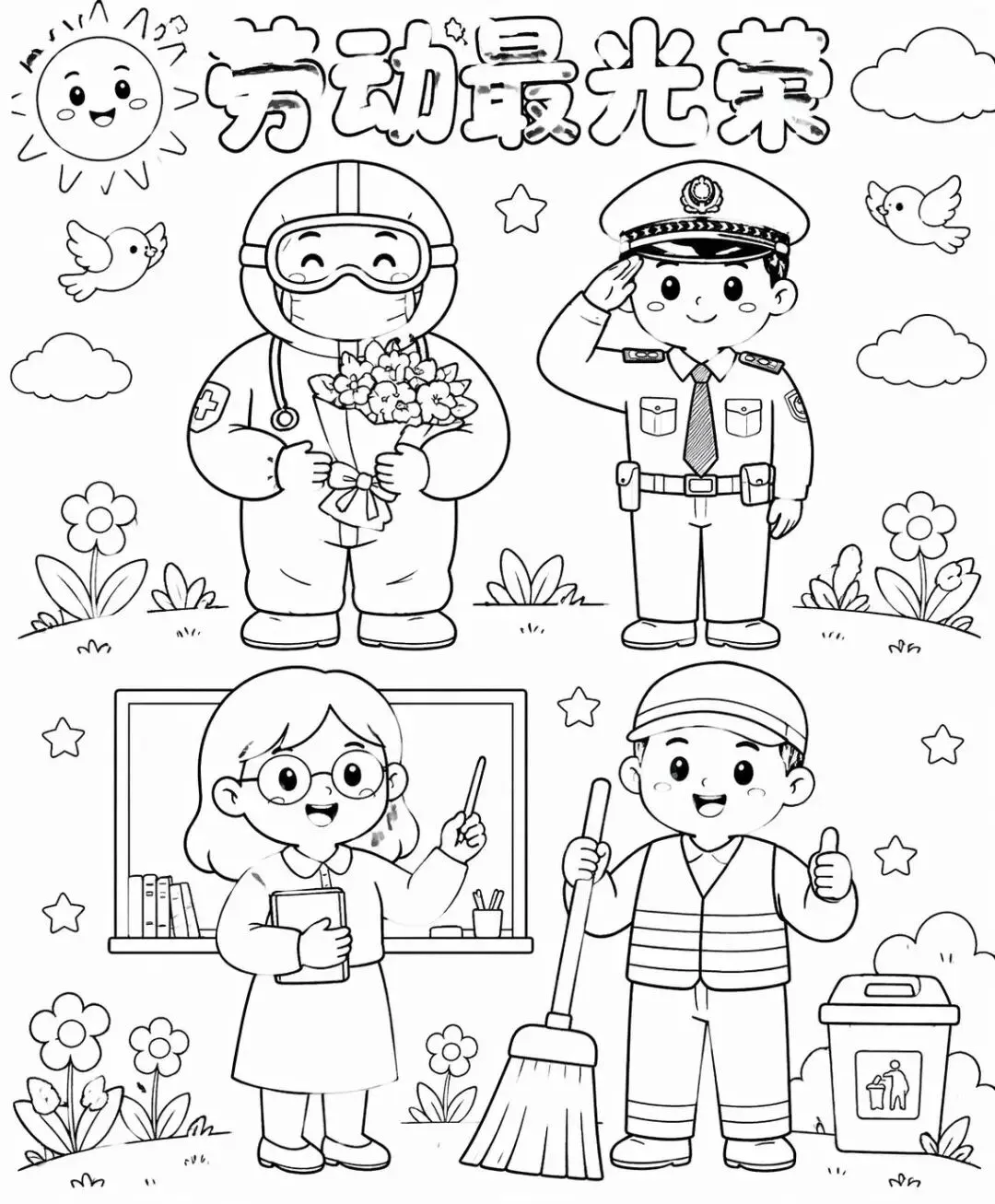 五一劳动节主题画可打印